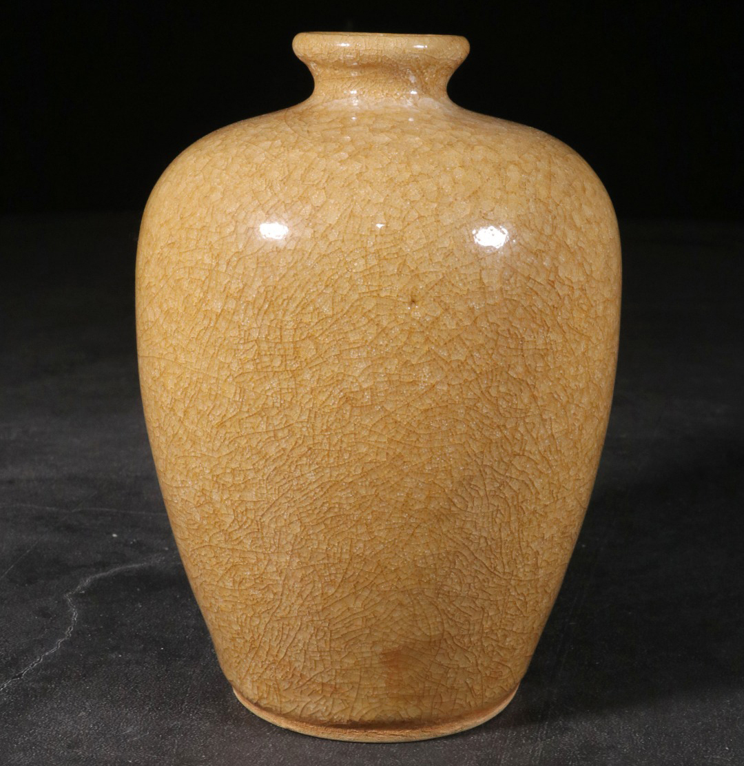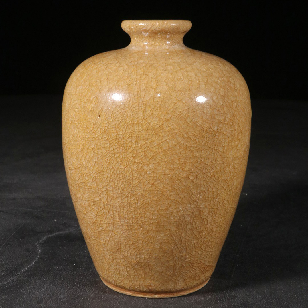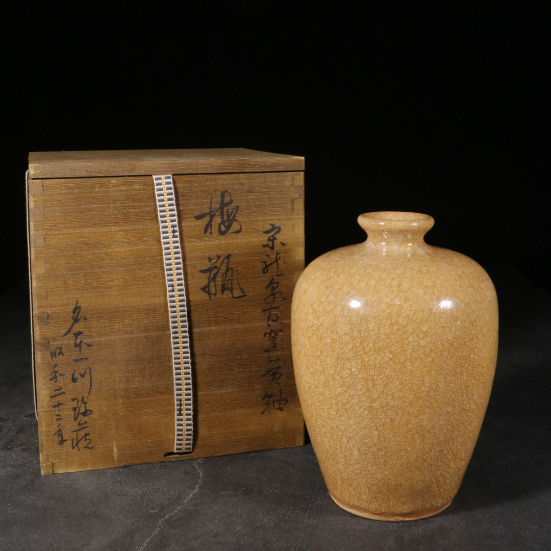 ▽鴻▽宋朝時代 陶磁器 官窯黄釉氷裂紋梅瓶 共箱 時代物 中国古美術 骨董品