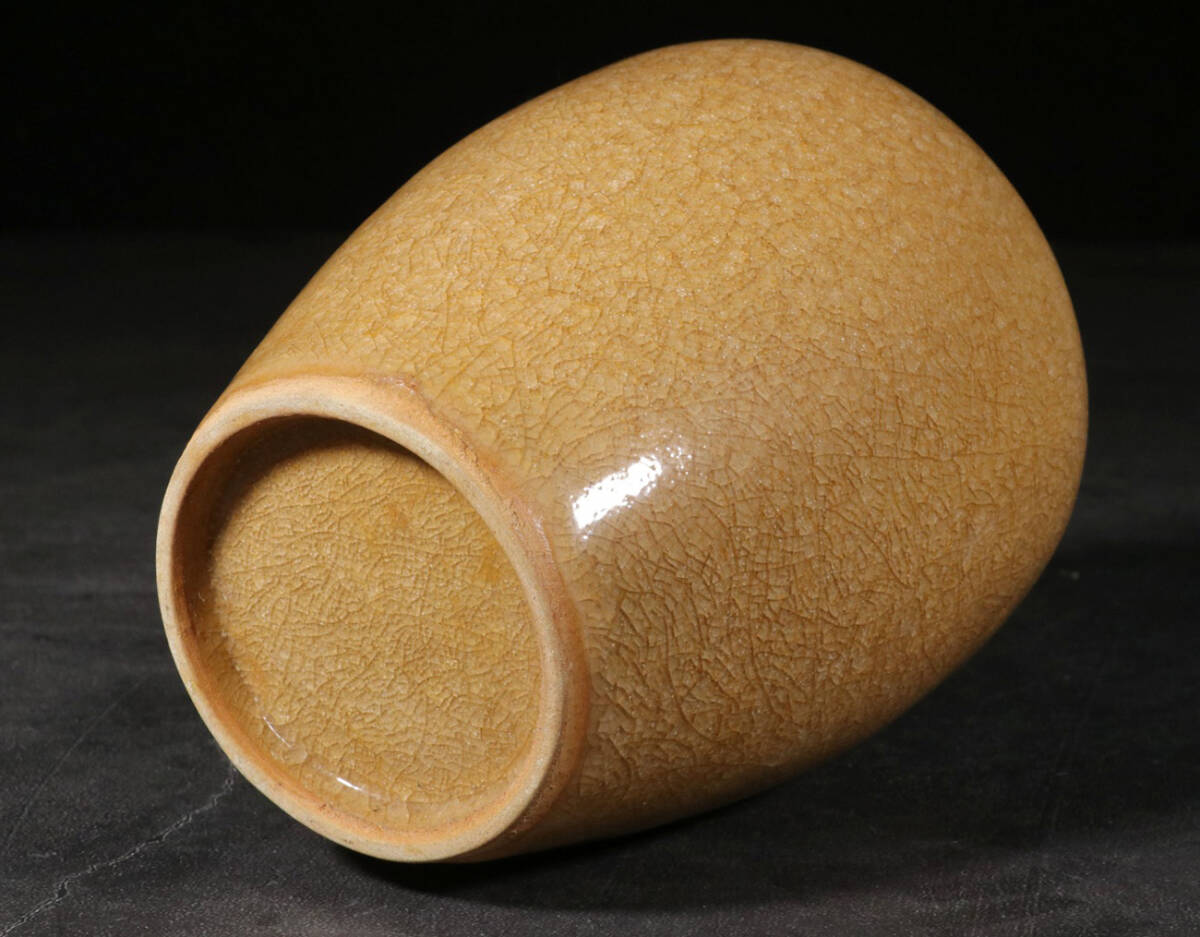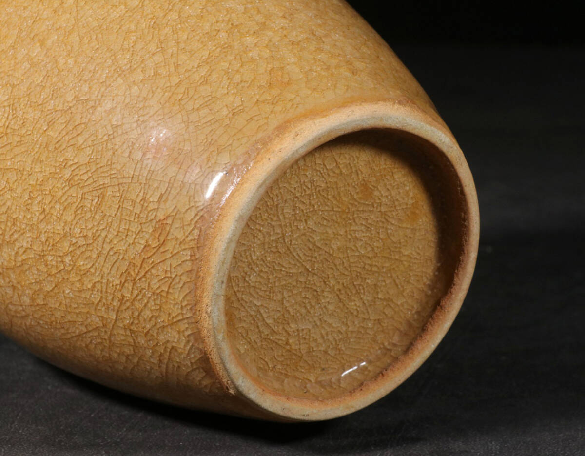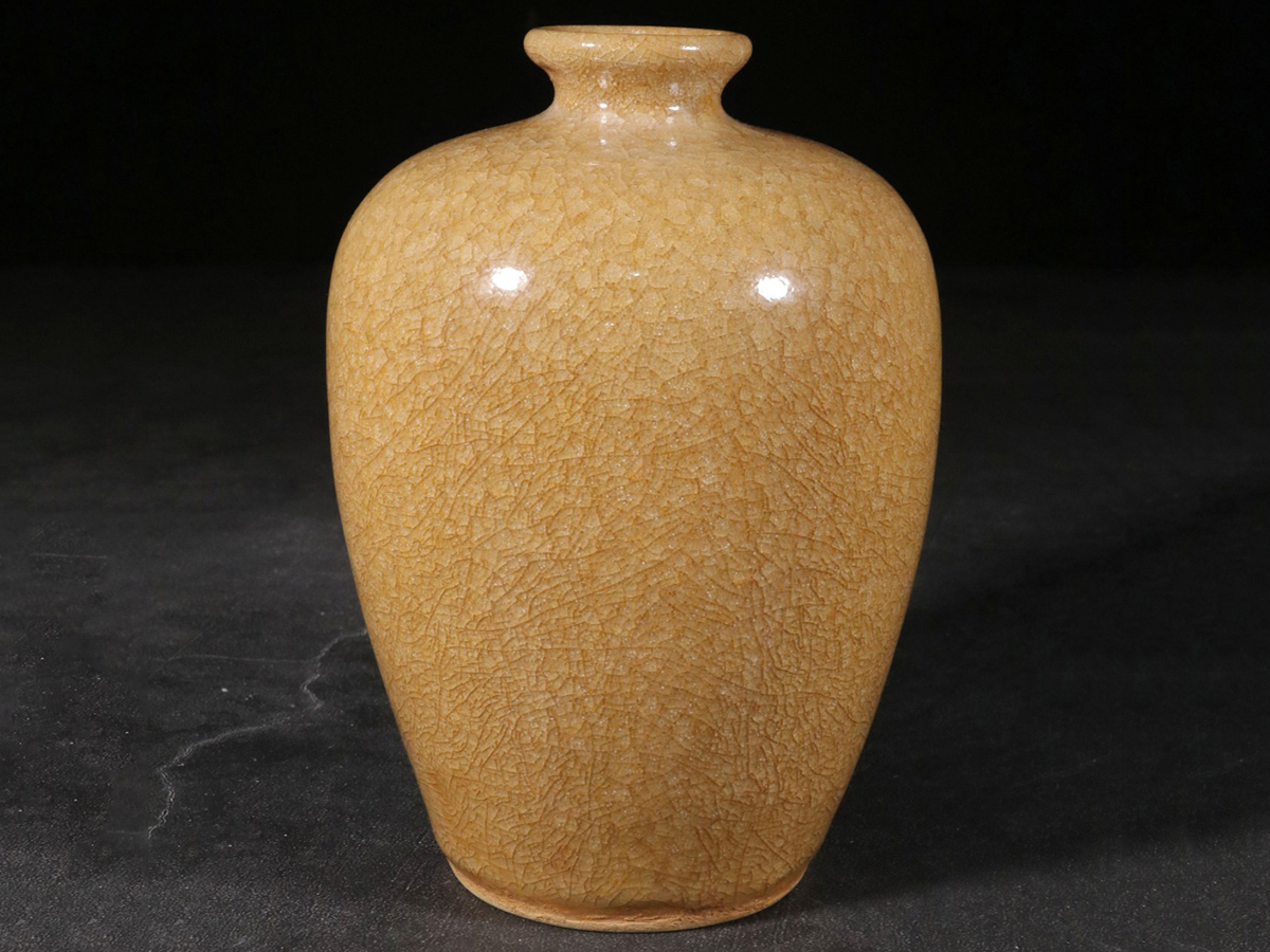 ▽鴻▽宋朝時代 陶磁器 官窯黄釉氷裂紋梅瓶 共箱 時代物 中国古美術 骨董品