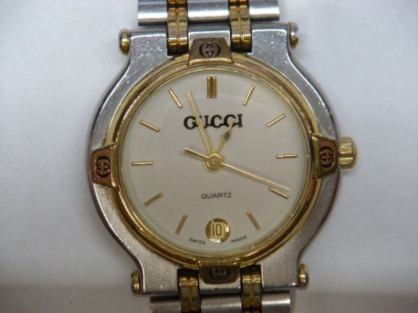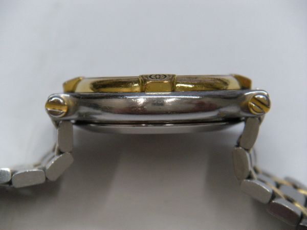 グッチの腕時計になります。 【詳細内容】 ・GUCCI (9000L) (クォーツ) ・ケースサイズ:横約25.2mm×縦26mm(リューズ除く、ラグ含む) ・ベルト全長:約15.5cm(ケース含む、尾錠除く) (経年に伴う、若干の汚れ、小キズ等が見受けられます。) ・総重量:約30.3g ※箱等の付属はございません。 (現品のみとなります。) ※画像掲載の物が全てとなります。 ※落札後の取引情報をご入力時に、必ず発送方法のご選択をお願い致します。 (発送方法の選択をお間違いされましても、システム上送料の変更は出来兼ねますことをご了承下さい。) ※ご購入意思のない方の入札はご遠慮下さい。 (評価が新規の方は、質問欄よりご購入意思をお知らせ下さい。) (お知らせなく、ご入札されても取り消しさせて頂く場合もございますことをご了承ください。) ※詳細は、画像を参照下さいませ。 商品は、中古品としてご理解頂いた上でのご入札をお願い致します。 細かな状態をお気になされます方や、完璧な美品をお求めの方は、 ご入札をお控え下さいませ。 ※商品は経年に伴う、多少の汚れ、小キズ等が見受けられます。 ※風防部の目立つキズは、特に見受けられません。 ※現在動作しております。 (電池交換済。) ※リューズ操作は、特に問題ないかと思われます。 ※日差の確認は出来ておりません。 (正常に動作しているかと思われます。) ※現状渡しにてご理解頂ける方のご入札をお願い致します。 画像はデジカメ撮影の為、見えにくい部分も御座いますが、 ご入札の際には画像を必ずご確認下さい。 (画像にてご判断が出来る方のご入札をお願い致します。) また、素人の出品となりますので、専門的なご質問にお答え出来ない場合がございますのでご了承くださいませ。 (状態的にお気になる点がございましたら、専門用語を使用なさらずにご質問をお願い致します。) ノークレーム、ノーリターンでお願い致します。 ≪支払方法≫ ■かんたん決済 (迅速な決済お手続きが可能な方に限ります。) ※商品到着後、受取連絡ボタンのご対応を頂ける方に限ります。 (ヤフオクシステム変更に伴い、必ずご対応頂けます様お願い致します。ご対応頂けない場合は、今後のお取引が出来かねます事をご了承下さい。) ≪発送方法≫ ■ゆうパック(元払いor着払い) ※60サイズにて発送が可能です。 (詳しい料金表は下記のURLをご確認下さい。) https://www.post.japanpost.jp/service/you_pack/charge/ichiran/14.html ■レターパックプラス(+600円) ■レターパックライト(+430円) ■定形外(補償なし/+140円) (簡易包装での発送となります。) 出来る限り迅速な対応を心がけておりますが、状況によりご連絡や発送が一日程度遅れる場合がございます。ご容赦下さいませ。 48785 |