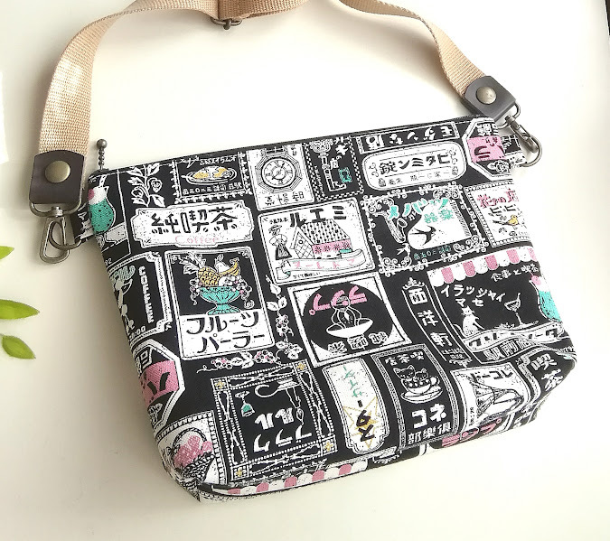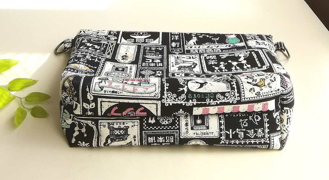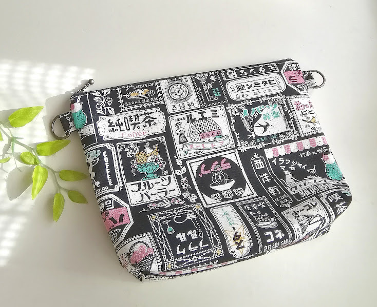 ハンドメイド 〈サコッシュ用〉マチ付きポーチ レトロ喫茶*可愛い看板柄〈25×16×6.5〉※内ポケット1コ/ショルダー紐は付属しません