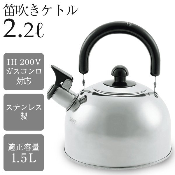 笛吹き ケトル 大容量 2.2リットル IH やかん 直火 広口 ステンレス 湯沸かし 調理器具 キッチン 薬缶 送料無料- 60N◇ 笛吹ケトルNB