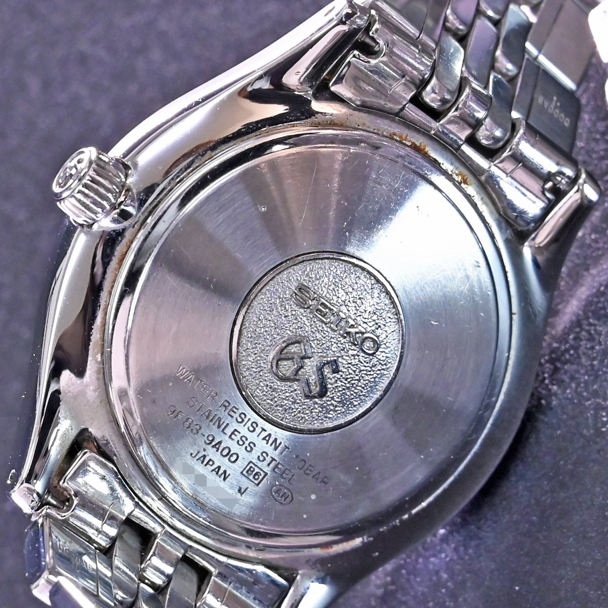 セイコーのGS グランドセイコー デイデイト SBGT001 9F83-9A00です。 1990年代後半~2000年代初頭に製造された、グランドセイコーの中でも特に評価の高い 9Fクオーツ デイデイトモデル。 本機に搭載される「9F83」は、年差±10秒を誇る高精度に加え、機械式のような太く力強い針の動きを実現するために独自構造を採用した“世界最高峰のクオーツ” とも呼ばれる名機です。 デザインは当時のGSらしい端正なケースフォルムと、視認性に優れたバーインデックスの組み合わせ。 デイデイト表示を備えながら、派手すぎず実用時計として非常に完成度の高い一本です。 市場でも圧倒的な人気を誇るメゾンのお品なのでお探しの方も非常に多いかと思います。 ※基本動作確認済。 |