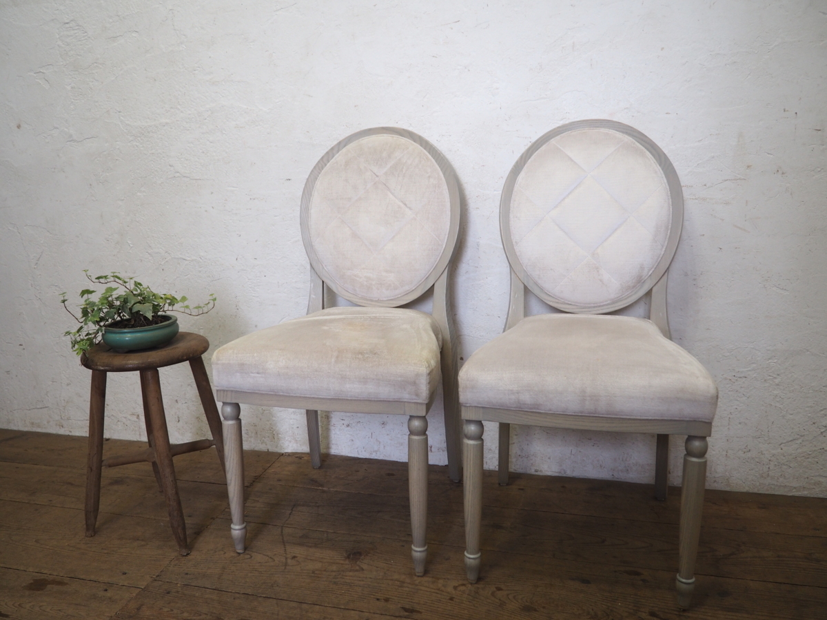 ヨーロピアンスタイルの素敵な古い木製チェア、2脚セットです。