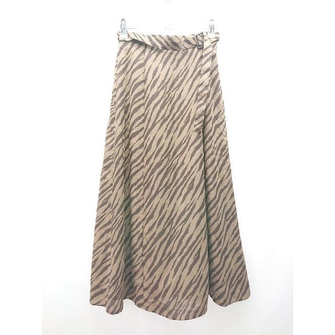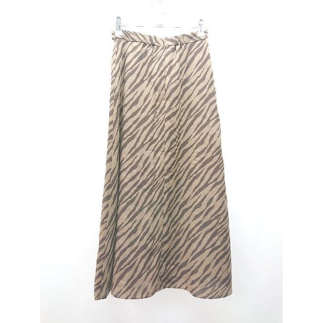 ◇ BABY LONE ゼブラ柄 アニマル バックジップ ロング丈 フレア スカート サイズ36 ブラウン/ベージュ レディース E