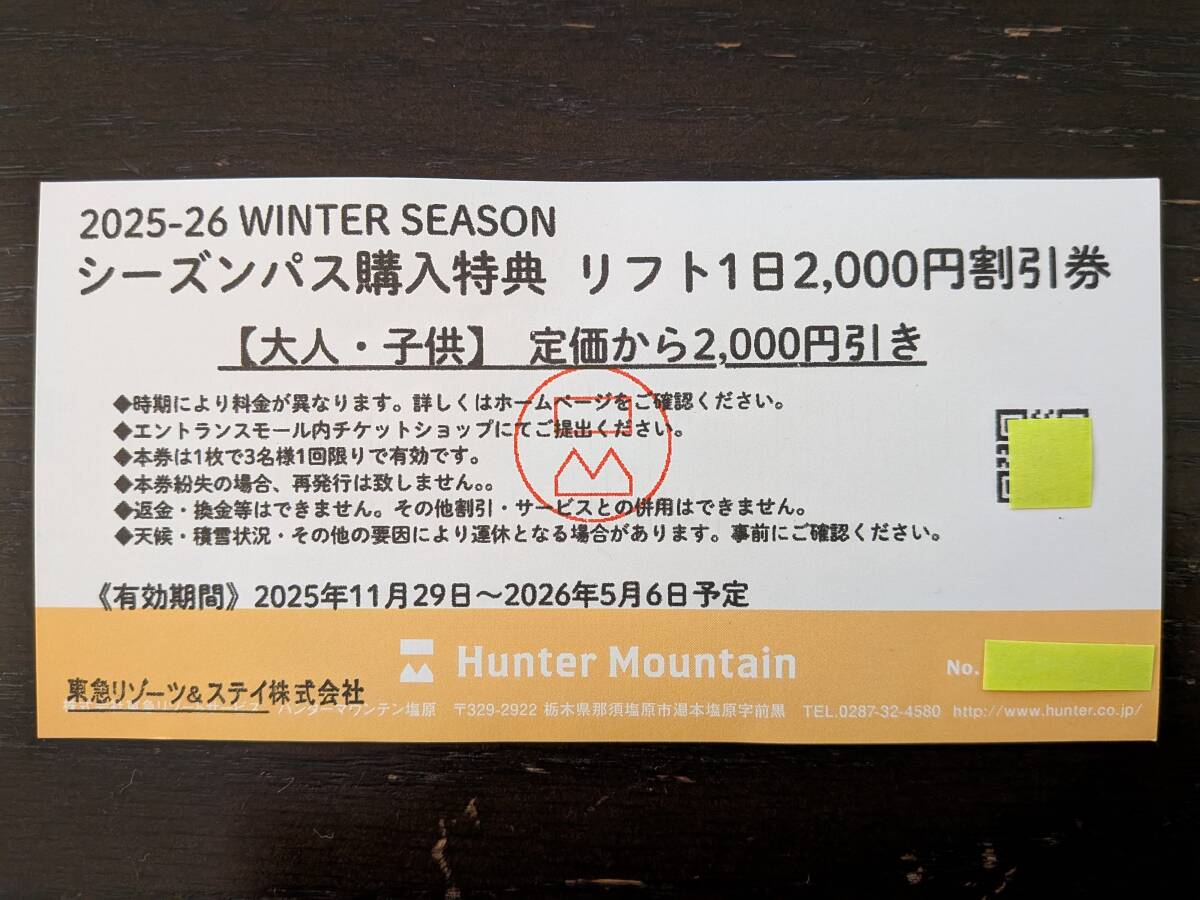 ハンターマウンテン 2025-2026シーズン リフト1日2,000円割引券 です。