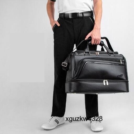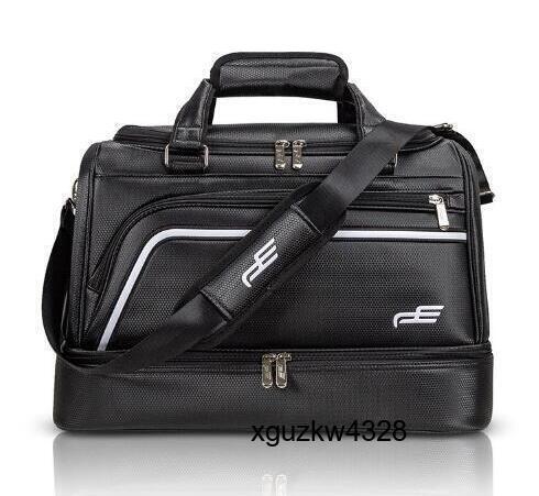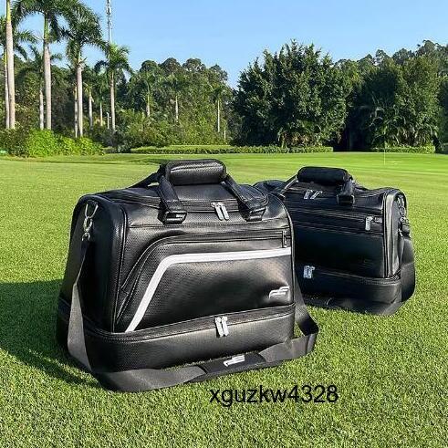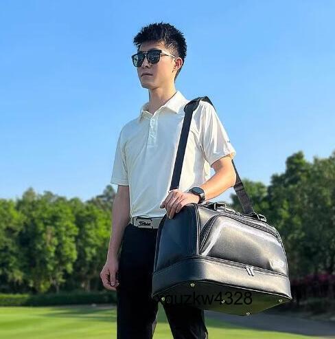 新入荷ゴルフトートバッグ 二層式 ラウンドトート PUレザー 2WAYシューズポケット付き ショルダー付き防水大容量ジム旅行出張 ブラック