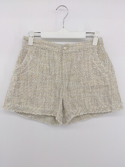 ◇ ROPE' ロペ ツイード調 フリンジデザイン パンツ サイズ38 ベージュ系 レディース P