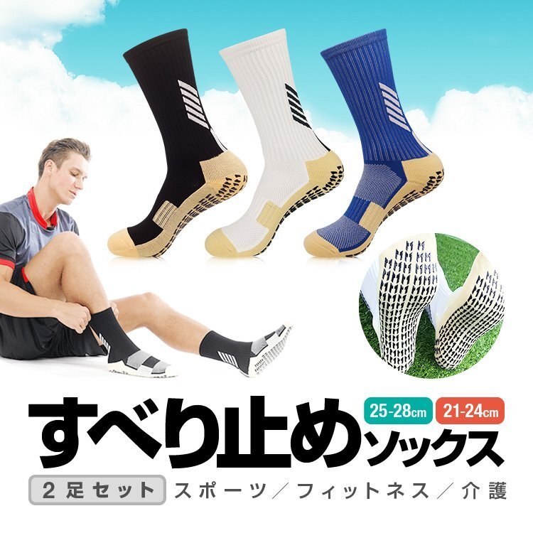 ◆滑り止めソックス 2足セット グリップソックス 青/白/黒 スポーツソックス スポーツ/トレーニング/フィットネス/ヨガ/介護にも 足裏全面滑り止め加工 転倒防止に 【黒S】GPSOC02S
