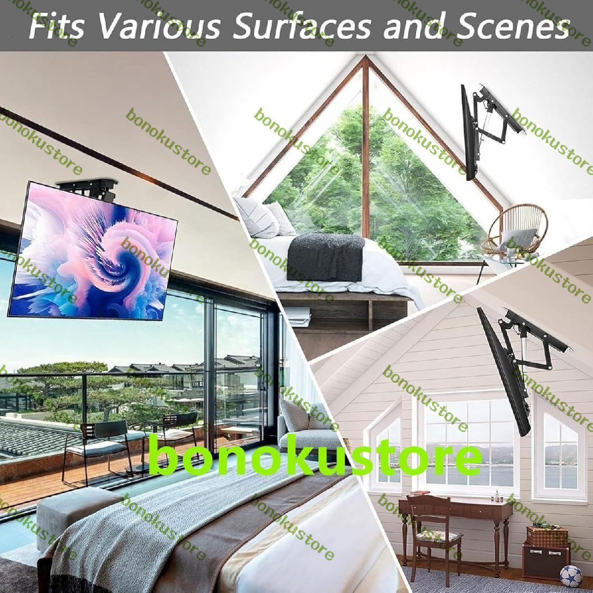 50インチ - 90インチ電動テレビ天井マウント、4ギア電動テレビブラケット、リモート&メモリ手動制御付き、0-85°角度調整、挟み込み防止保護、家庭、オフィス、会議室、ホテル用