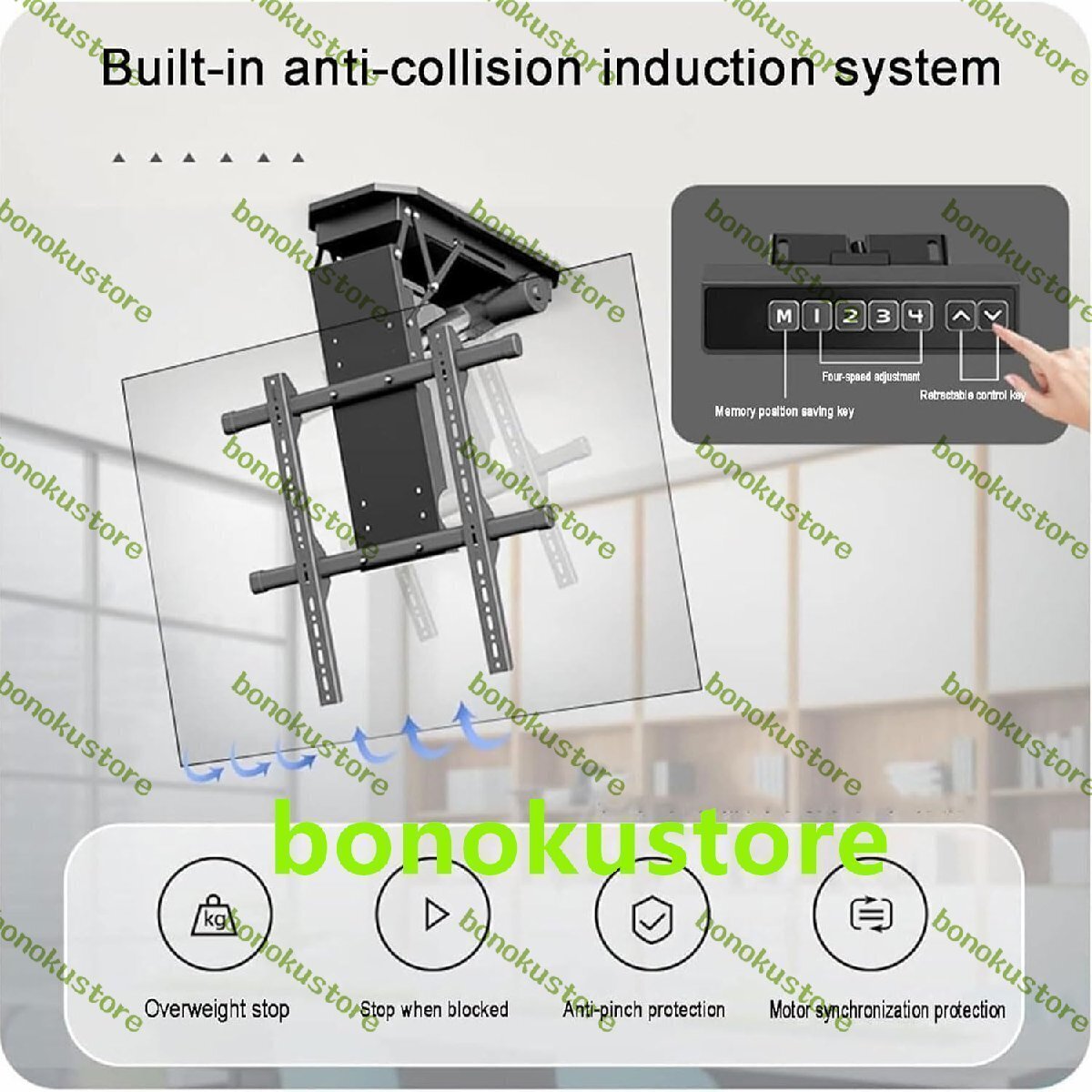 50インチ-90インチ電動テレビ天井マウント 4ギア電動テレビブラケット リモート&メモリ手動制御付き 0-85°角度調整 挟み込み防止保護