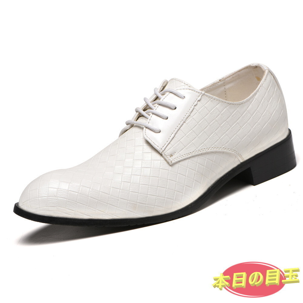 1円~ ☆ メンズ ビジネス レザー シューズ ホワイト サイズ 26.5cm 革靴 靴 カジュアル 屈曲性 通勤 軽量 仕事 【612】