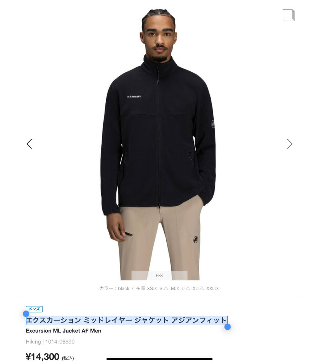 新品 マムートMAMMUT サイズS エクスカーション ミッドレイヤー ジャケット アジアンフィット未使用THE NORTH FACE ダウンジャケット