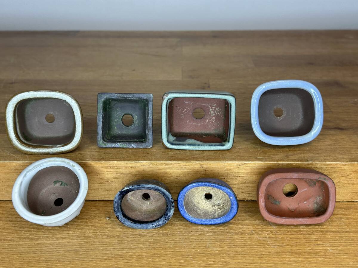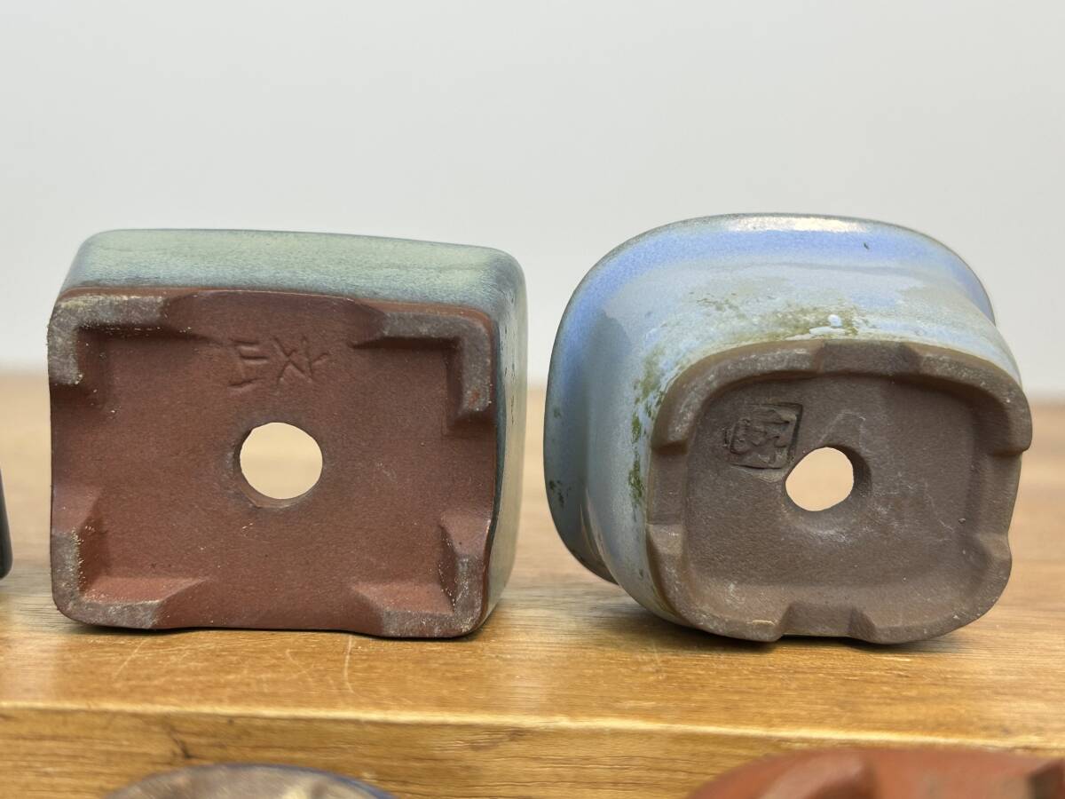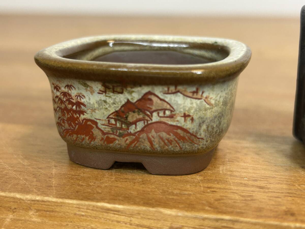 ・上の段 左の赤絵鉢サイズ 横4.9㎝(内寸3.8㎝)・縦4.3㎝(内寸3.3㎝)・高さ2.6㎝(内寸1.8㎝)(数ミリの誤差は、お許しください。)