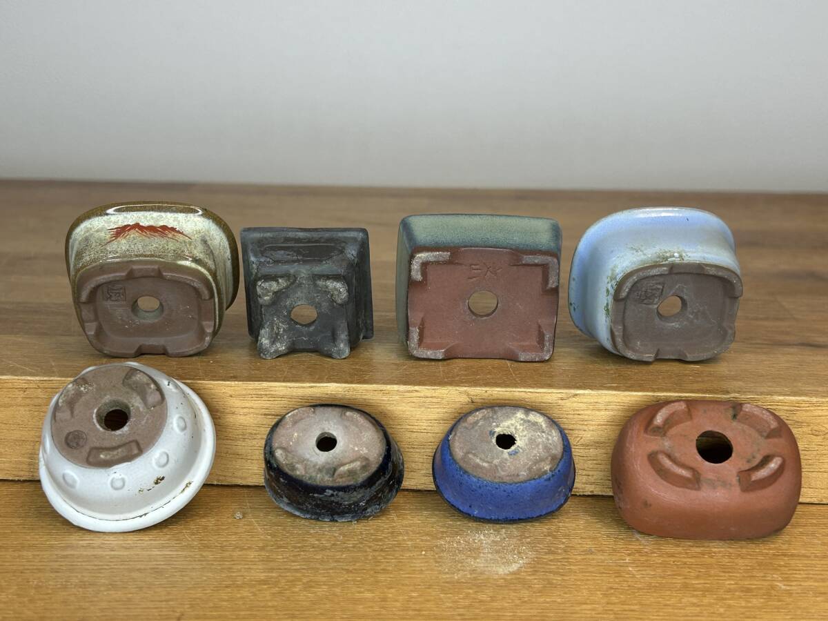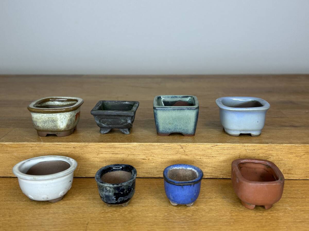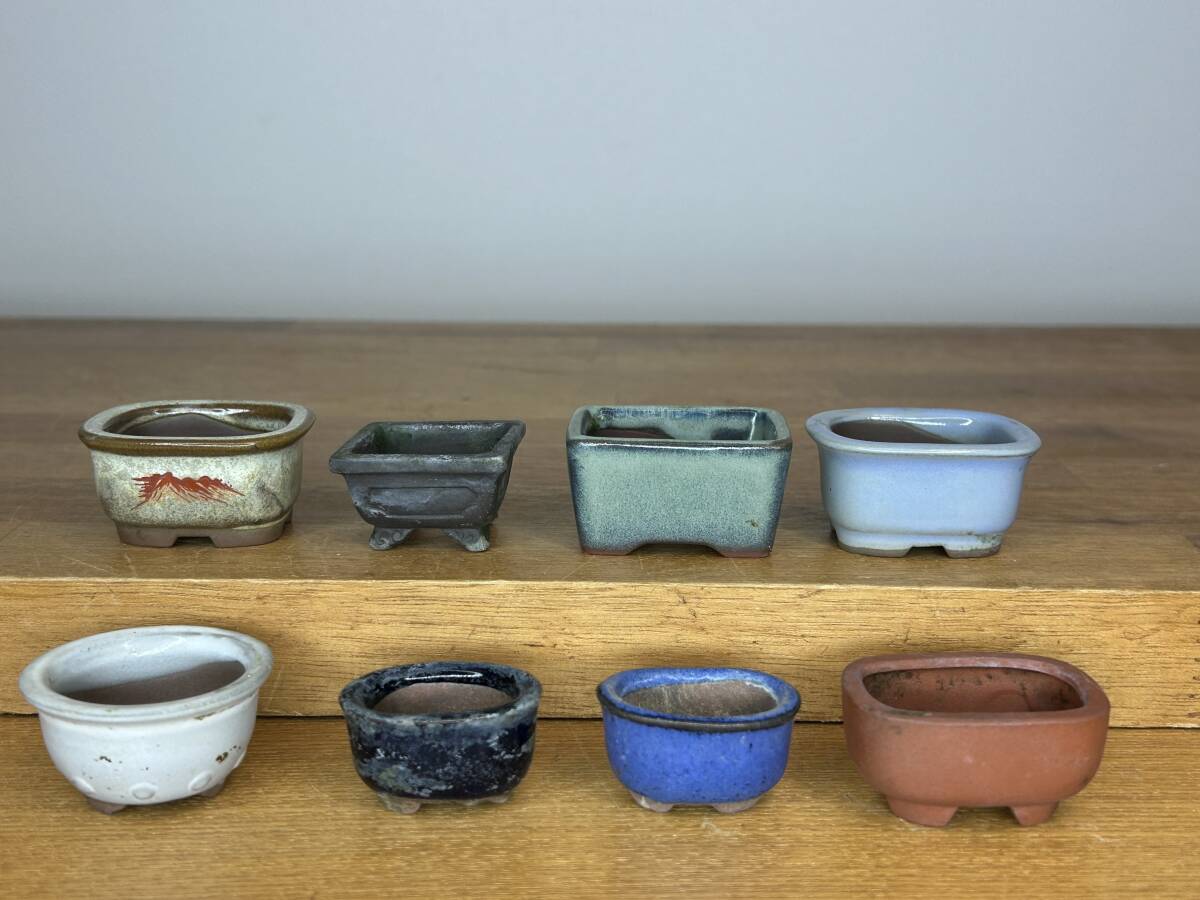・上の段 左の赤絵鉢サイズ 横4.9㎝(内寸3.8㎝)・縦4.3㎝(内寸3.3㎝)・高さ2.6㎝(内寸1.8㎝)(数ミリの誤差は、お許しください。)