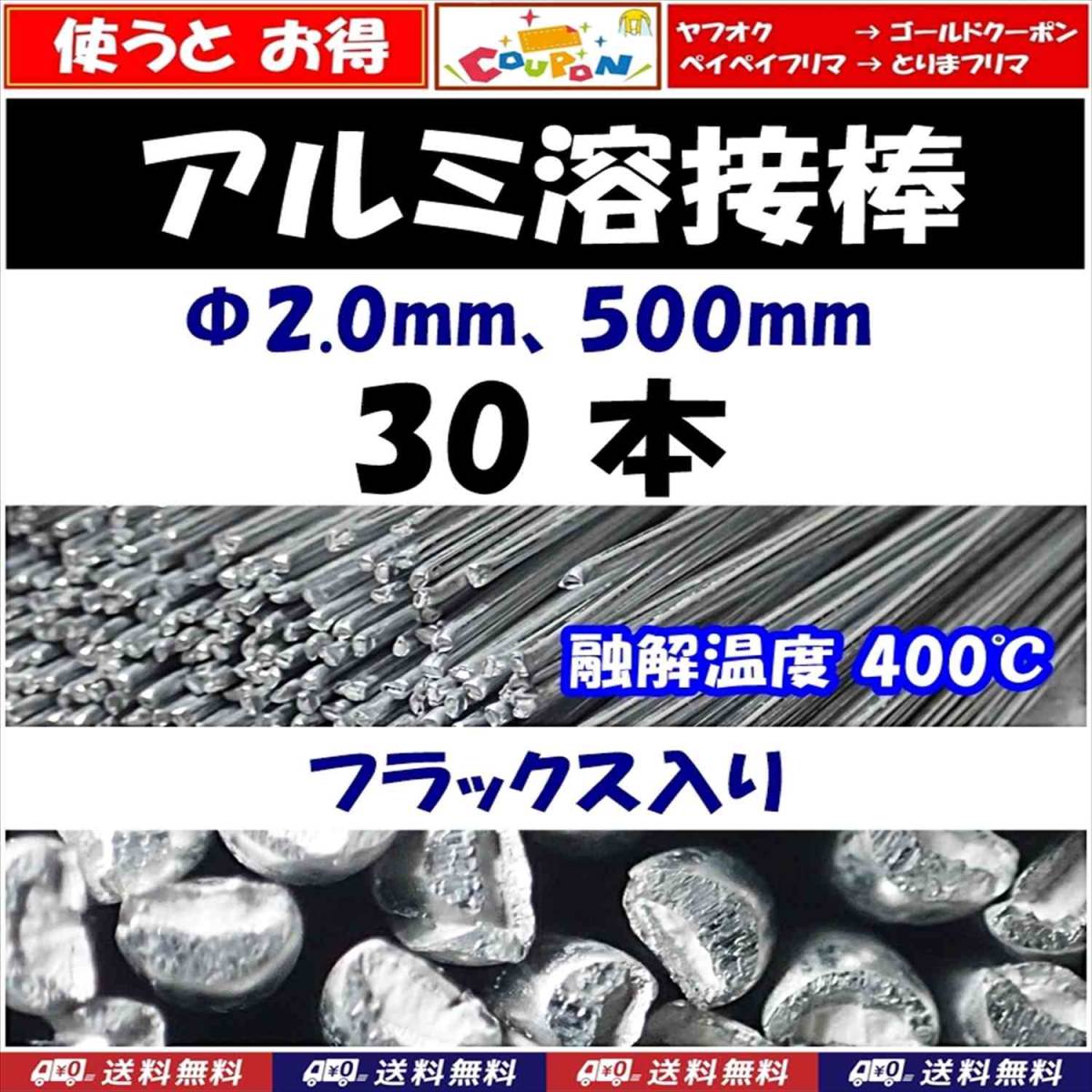 【送料無料】アルミ溶接棒 30本 Φ2.0 長さ50cm フラックス入 溶融温度400℃ 25cmでカットして60本でも可 即決 半田 はんだ用品