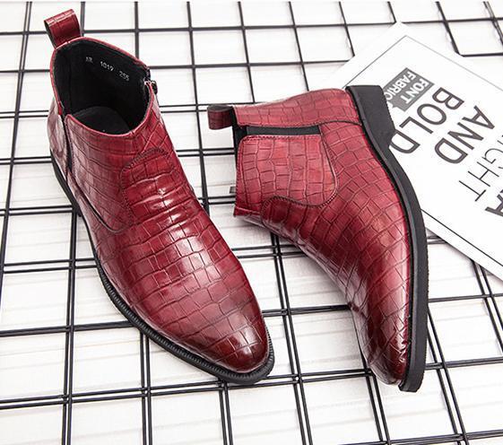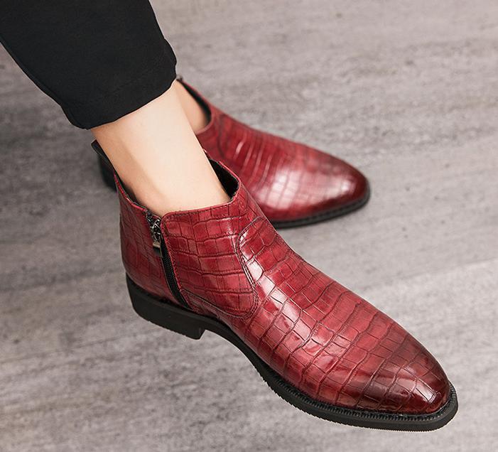 サイドジッパー メンズ ビジネスワニ柄 PUレザー シューズ レッド 24.5㎝ 革靴 靴 カジュアル 屈曲性 通勤 軽量 インポート品【n157】