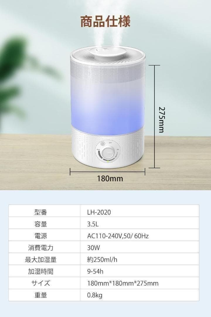 加湿器 大容量 3.5L ダブル吹出口 LH-2020