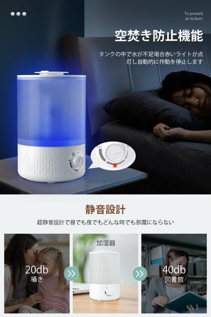【水漏れ防止・空焚き防止・PSE認証取得】この加湿器には空焚きを防ぐ機能が備わっており水不足時には自動的に加湿が停止し、赤色のランプが点灯します。PSE認証を取得しており安全性と信頼性が保証されています