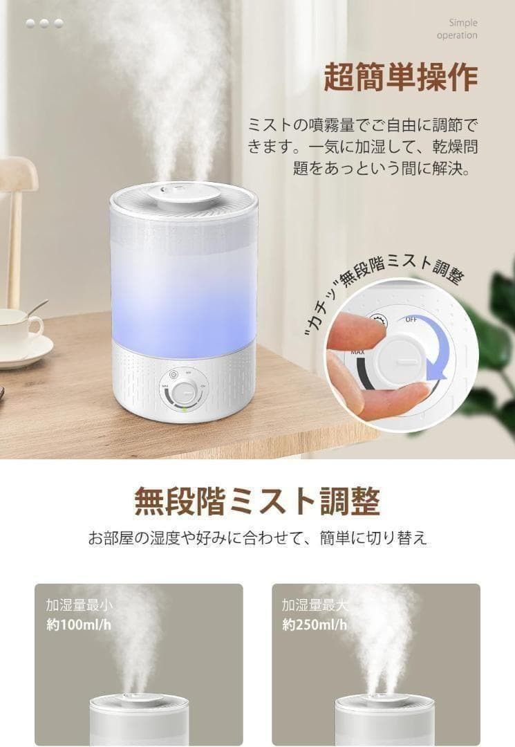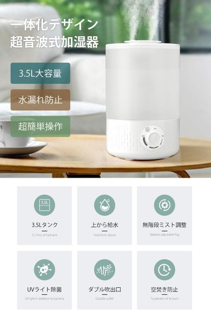 【超音波式加湿器・3.5L大容量・新一体化設計!】