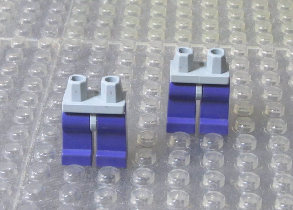ダークパープル(Dark Purple)のレッグ/灰色(Light Bluish Gray)のヒップのミニフィグレッグです。お手持ちのパーツとの組み合わせによっては接合部が固い/緩い場合もございます。また異なる時期のヒップ/レッグが接合されている場合がございますので予めご了承下さい