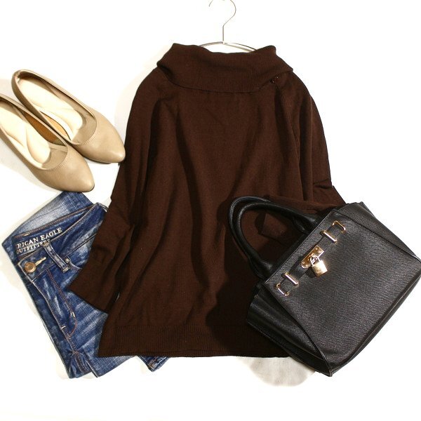 美品 TABOTS タルボット 綺麗めタートルネック クォータースリーブ ニット セーター M 春 秋 25B12