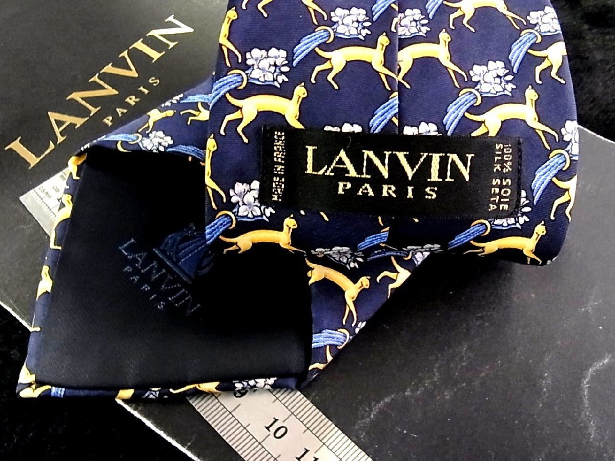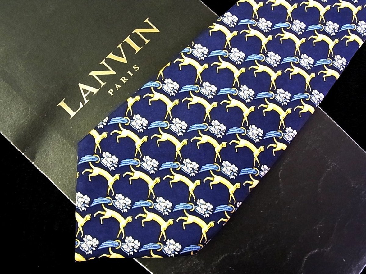 ♪今週の特売980円~♪4200♪良品【LANVIN】ランバン【猫 ネコ 花 植物 柄】ネクタイ♪