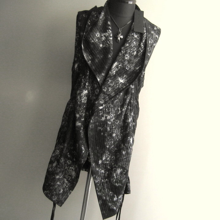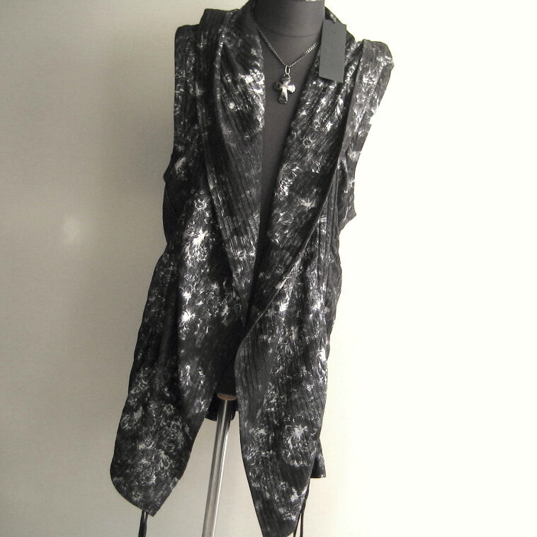 2.5万 新品 L トルネードマート フラワーフォイルタックストライプドロストパーカードレープベスト ブラック サンプル 473