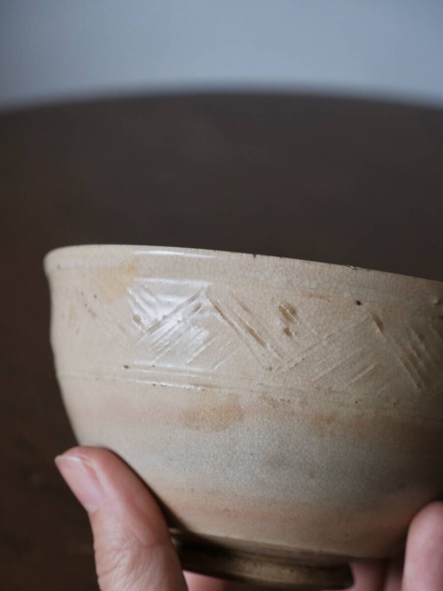 【青枠】古萩茶碗 萩焼 茶道具 古民藝 陶磁工芸 古道具 時代物 美術品Q2157