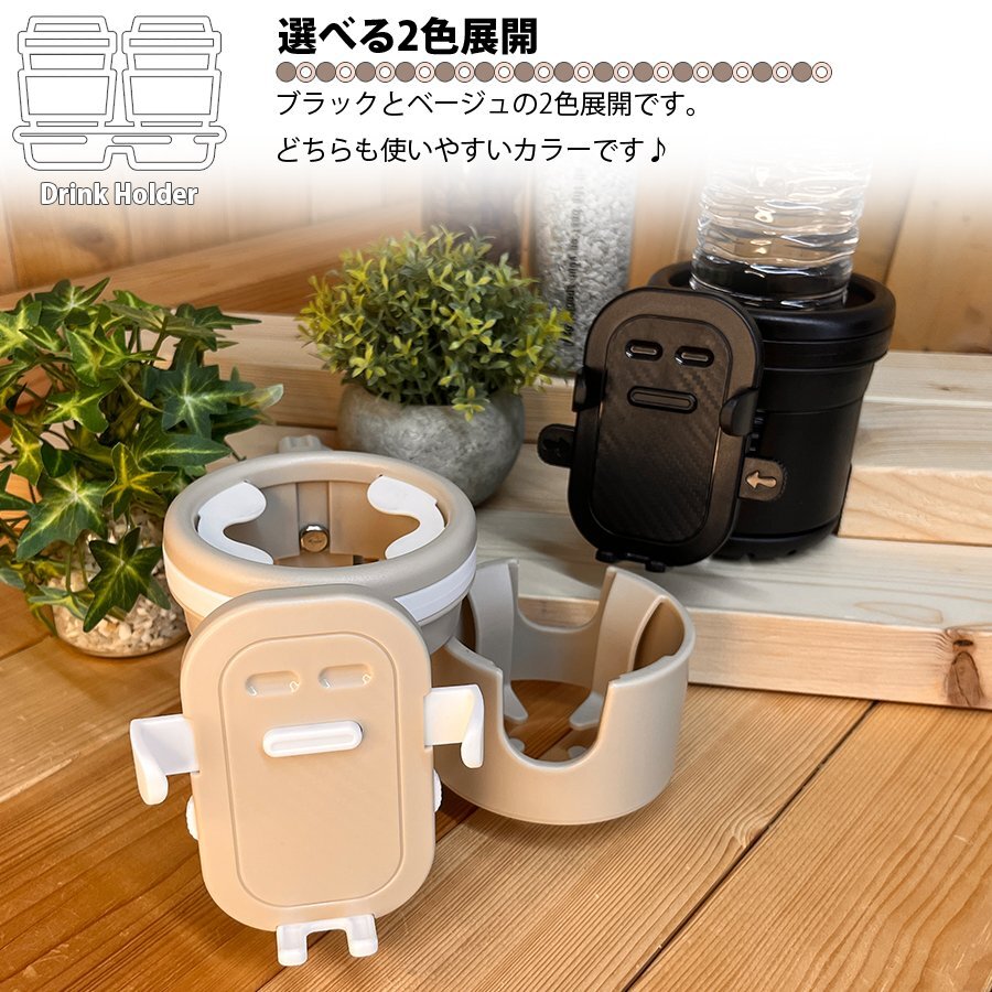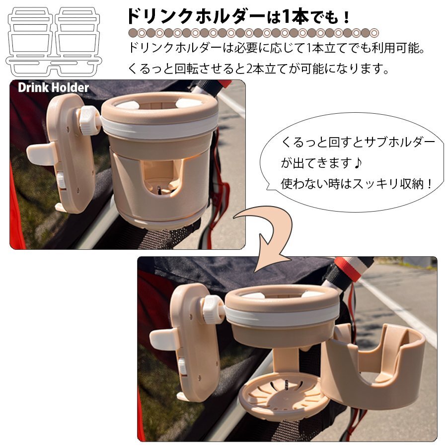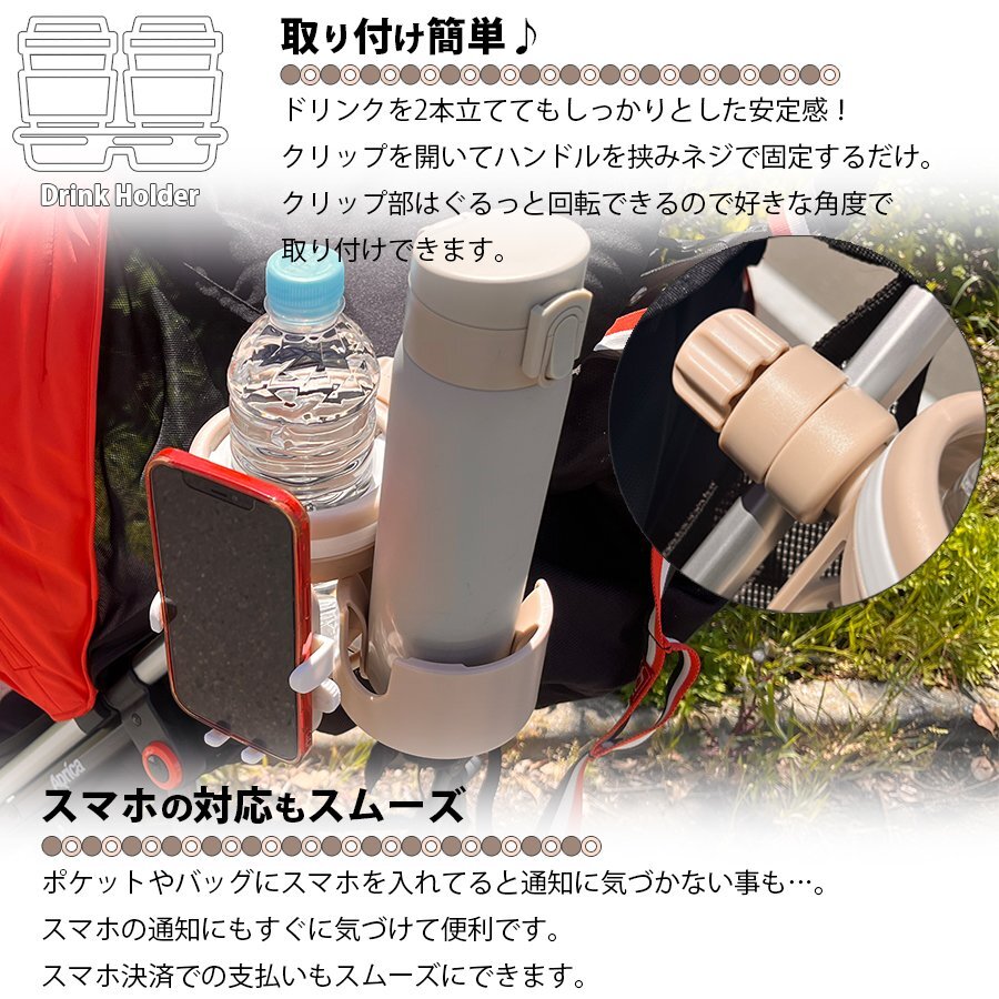 | ・ベビーカーに取り付け可能なドリンクホルダー! ・必要に応じて1本立て、2本立てにすることができます。 ・スマホホルダーもついてるので、片手で簡単操作ができる。 ・ドリンクホルダーにはシリコンゴムの爪がついてるので、ドリンクをしっかりホールド! ・取り付けも簡単!ハンドルを挟んでネジで固定。 ・車のヘッドレストへの取り付けもできるので、車内でも使えて便利♪ ・スマホホルダーに薄型のハンディファンを挟む事もできます。 ・選べるカラーは2色展開。 |
