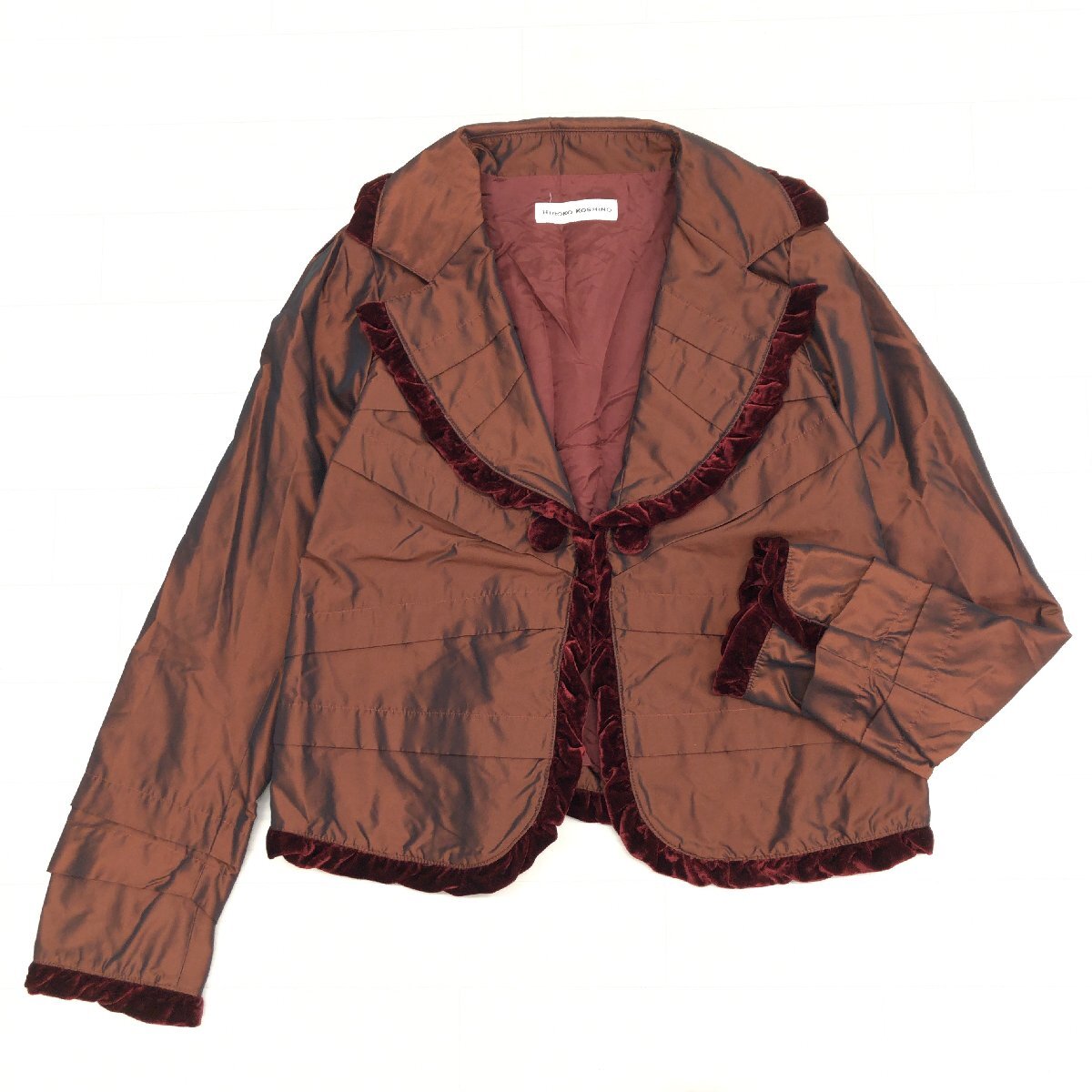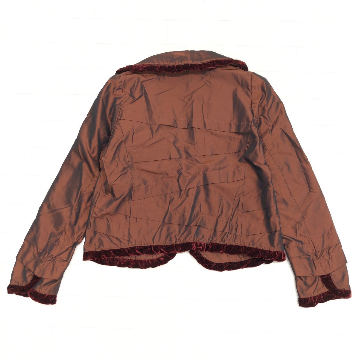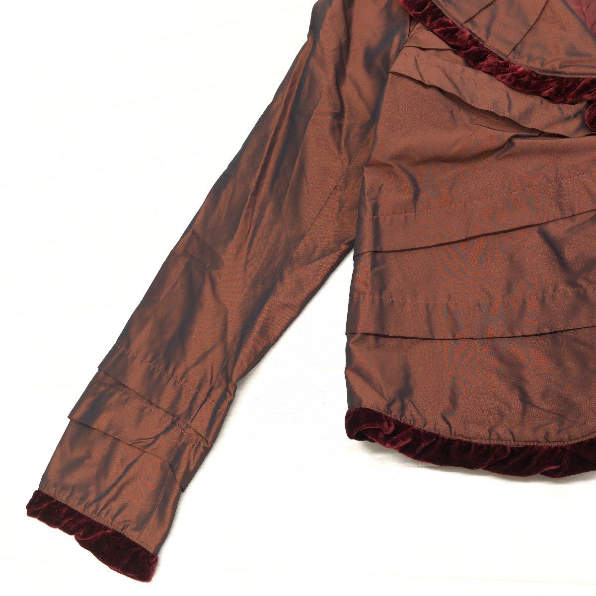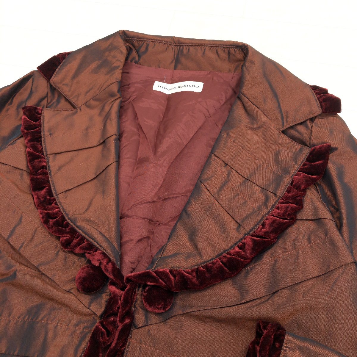 ●美品 HIROKO KOSHINO ヒロココシノ シルク混 ベロアフリル 中綿 クロップドジャケット 40(L) 羽織り ボレロ フォーマル ショート丈 婦人