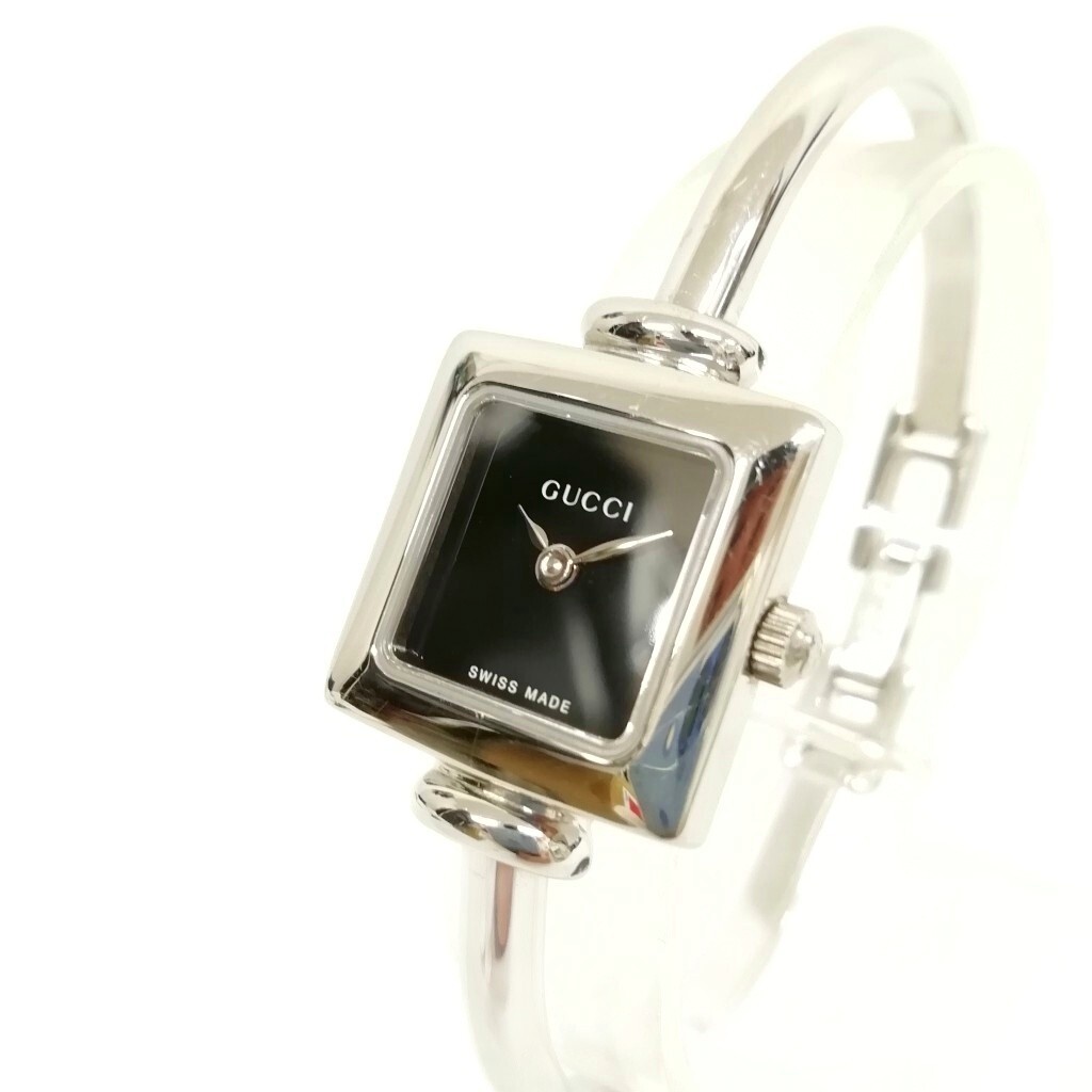 グッチ GUCCI 1900L バングルウォッチ クオーツ 腕時計 ブラック文字盤 シルバーカラー レディース