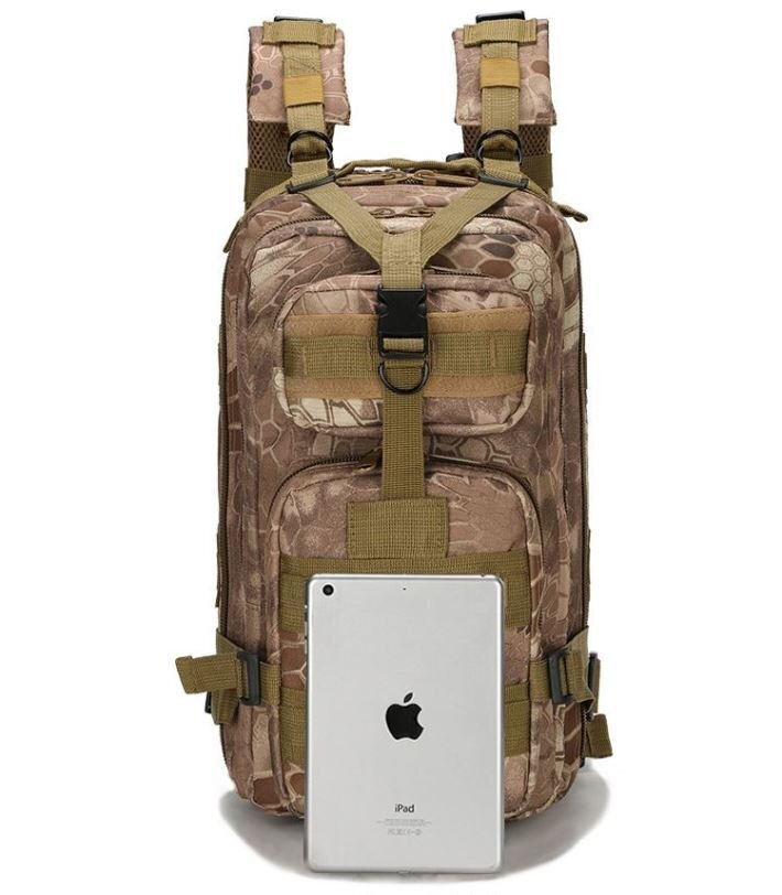 The large main compartment features a zippered pouch, mesh pocket and is hydration bladder compatible, the pack also has three additional pockets and storage compartments. The large storage options make the pack ideal for carrying gear or filling it with your entire Bug Out Bag Supplies. For extra comfort, the pack has been equipped with padded back and shoulder straps with breathable mesh backing.