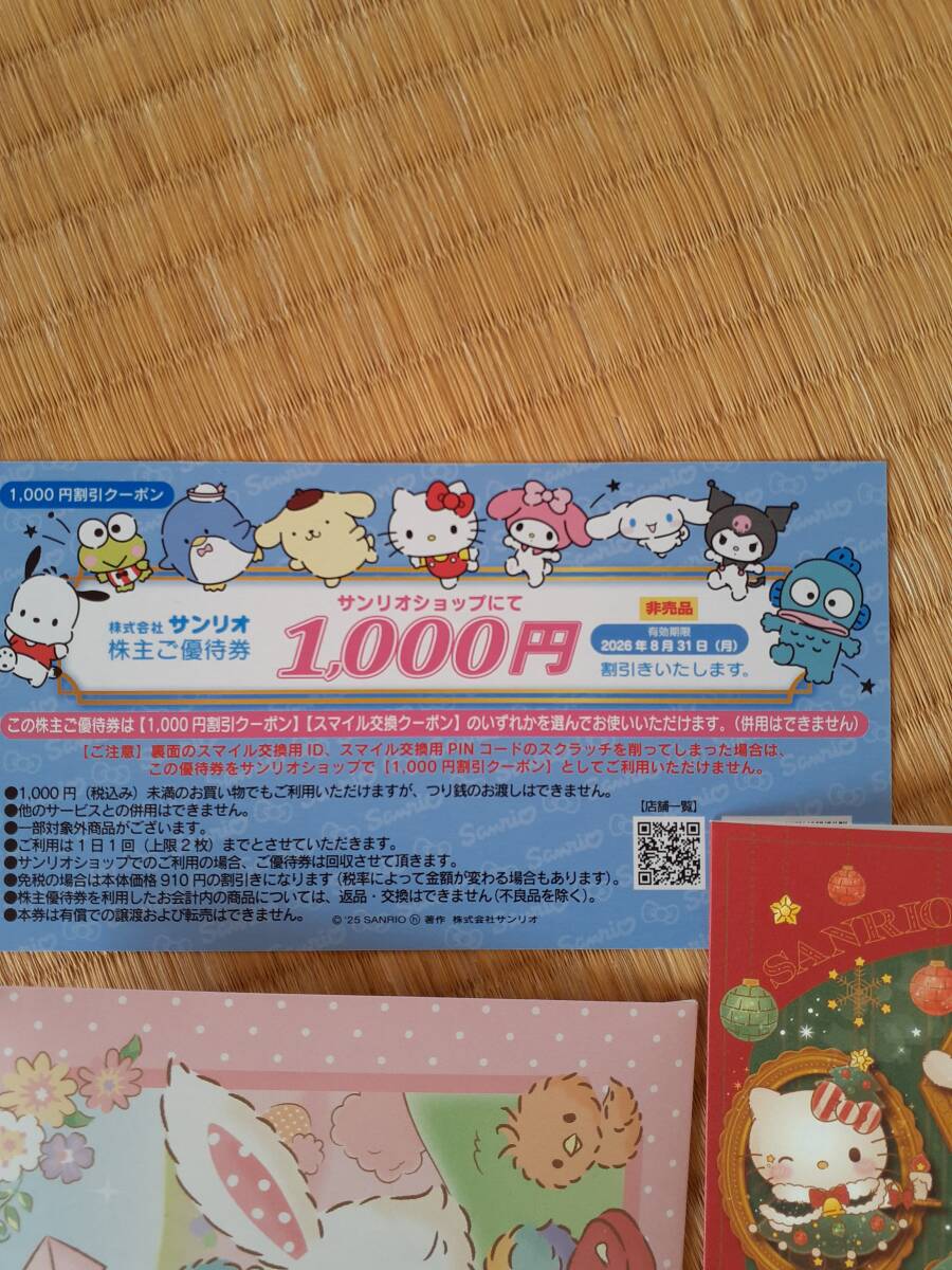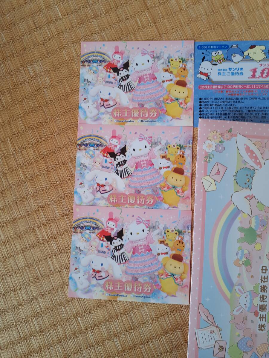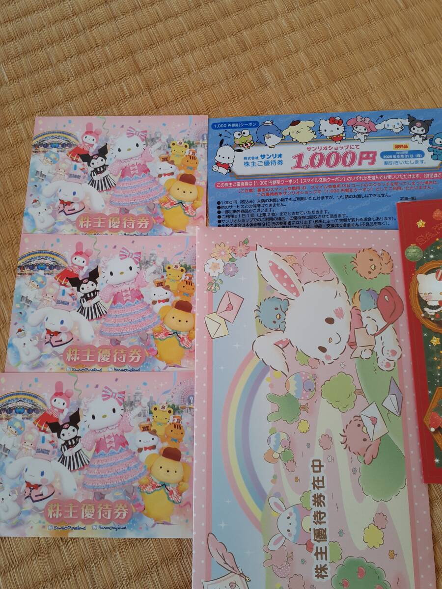 サンリオ株主優待3枚と1000円割引クーポンです。