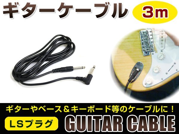 メール便 エレキギター エレアコ エレキベース キーボド等 シールド S/L型プラグ ギターケーブル シールド コード ブラック 3m 1本