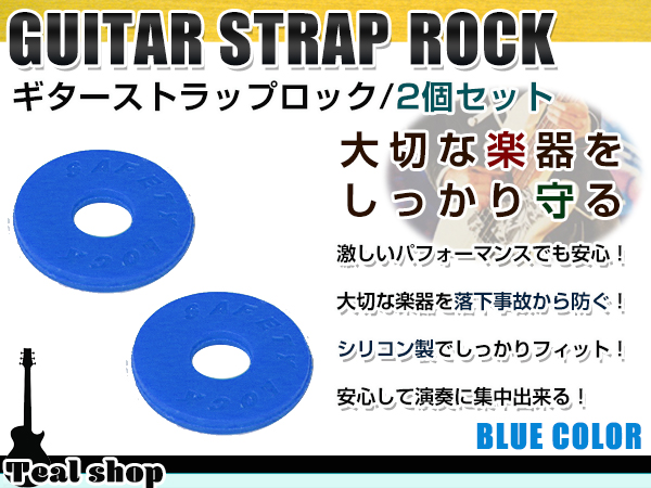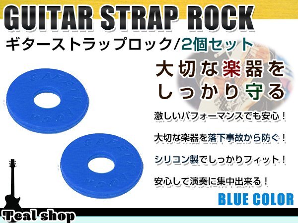 メール便 ギターストラップロック エレキギター アコギ ベース シリコンゴム製 ブルー 青 4個セット 落下防止 エンドピン ストラップピン