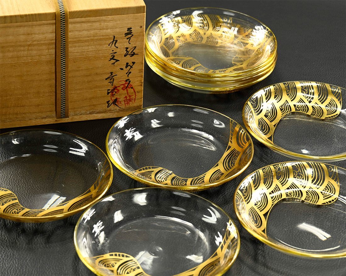 【永】d029【兵庫県の図書館や博物館の館長を歴任された歴史研究家遺族委託品】明治時代 春海バカラ 皿 9枚