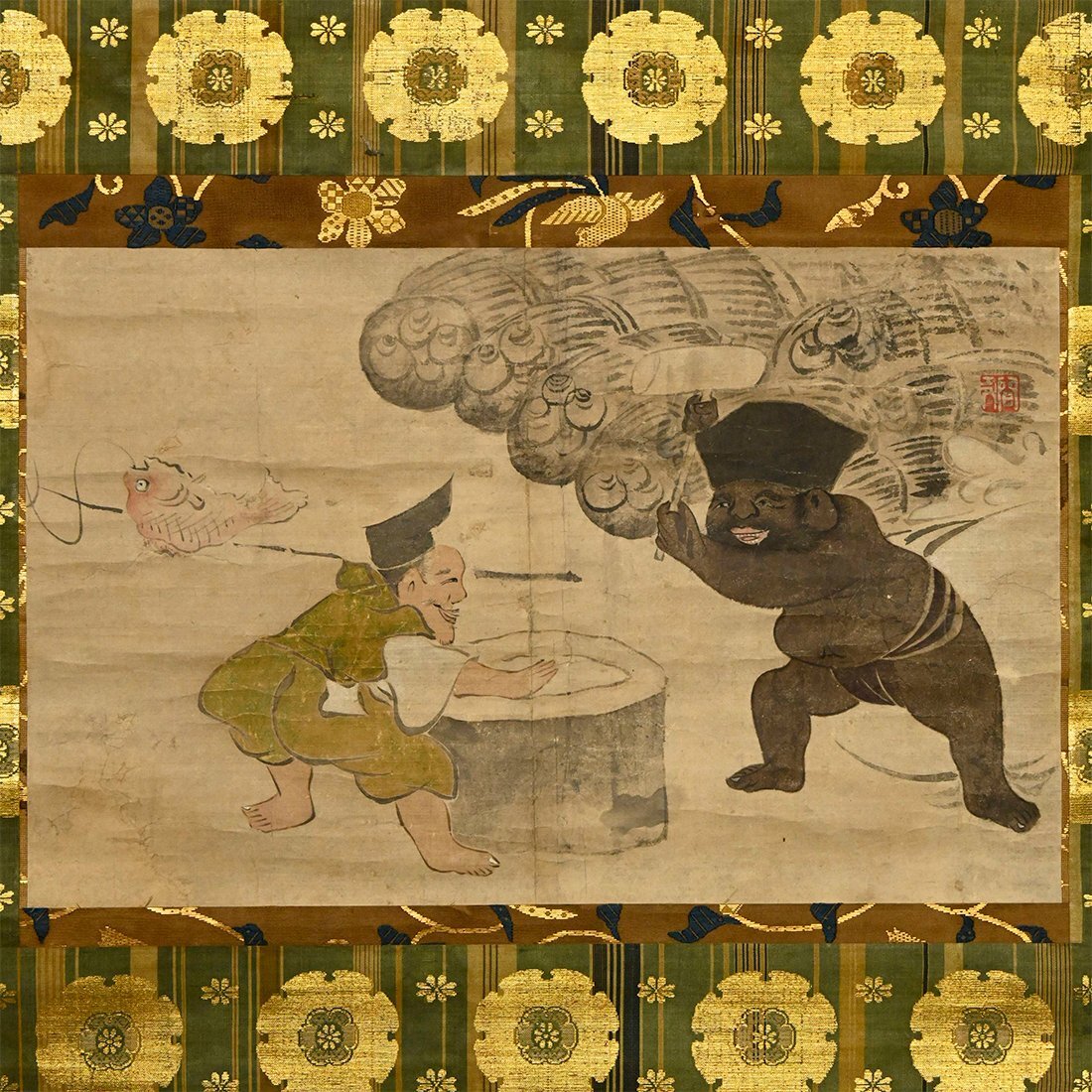 【永】b010【兵庫県の図書館や博物館の館長を歴任された歴史研究家遺族委託品】掛軸 尾形光琳 彩色恵比寿大黒人物画 花鳥画日本画