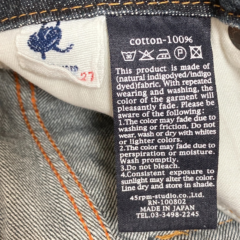 商品名:R by 45RPM アールバイフォーティーファイブアールピーエム ストレート デニムパンツ ジーンズ W27 インディゴ