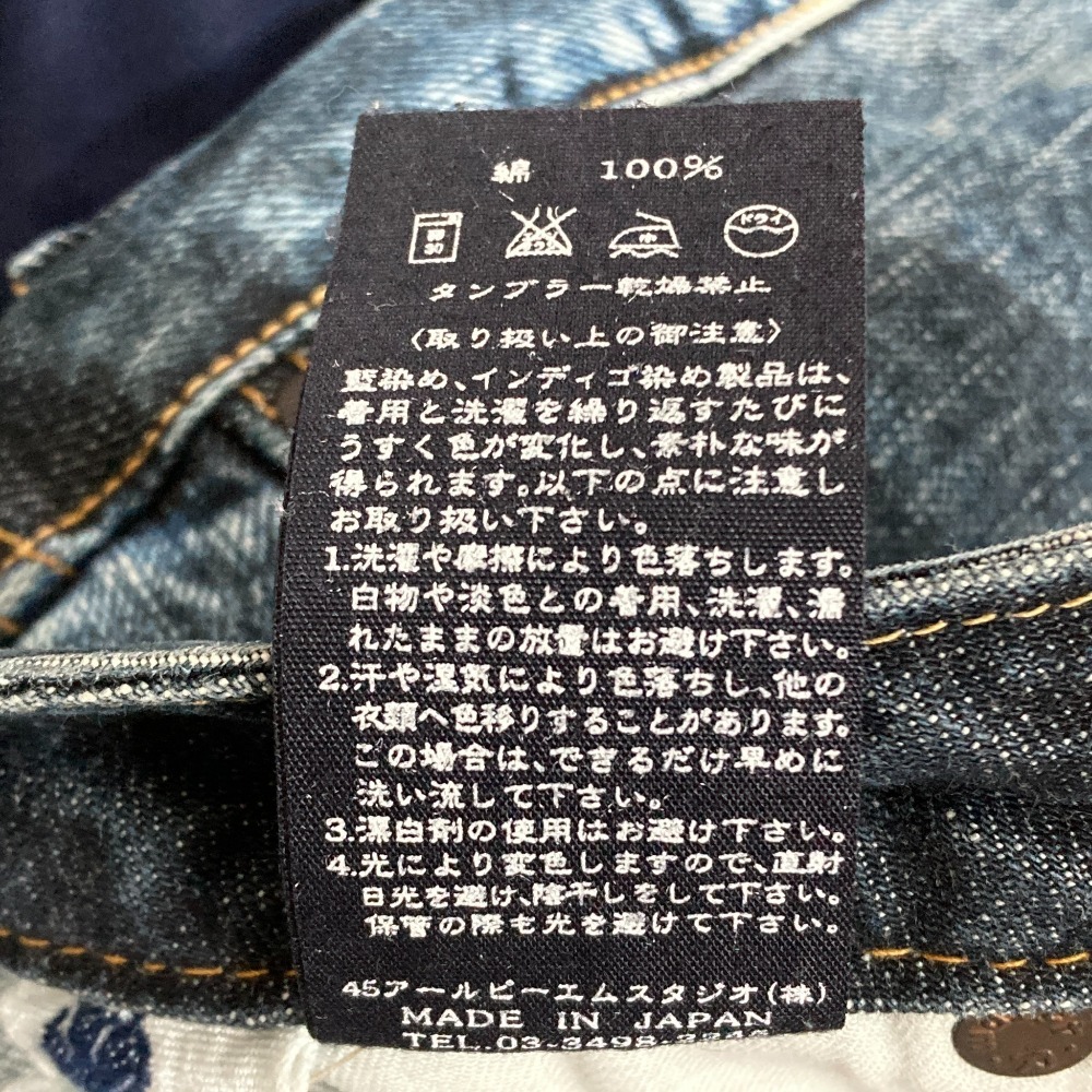 美品 R by 45RPM アールバイフォーティーファイブアールピーエム ストレート デニムパンツ ジーンズ W27 インディゴ