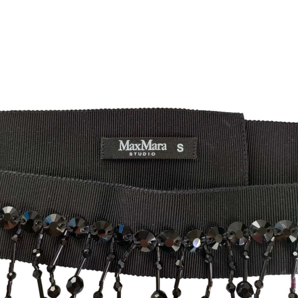 美品 Max Mara Studio マックスマーラステュディオ ビーズフリンジ ウエストマーク ベルト 箱付き S ブラック