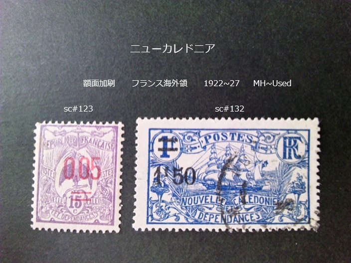 ニューカレドニア 額面加刷 仏領 1922~7 sc#123,132