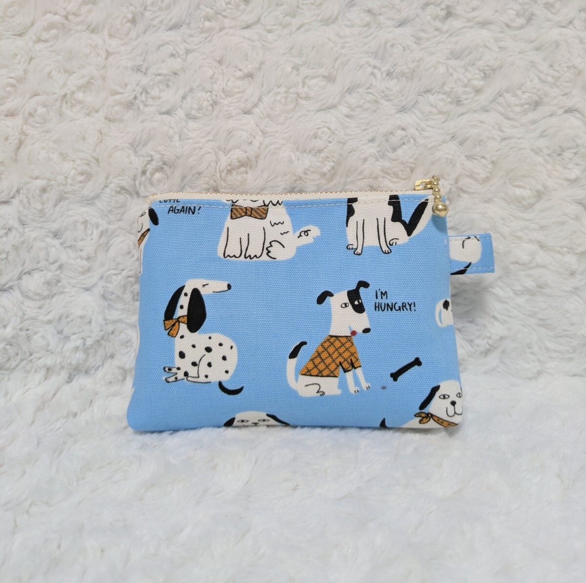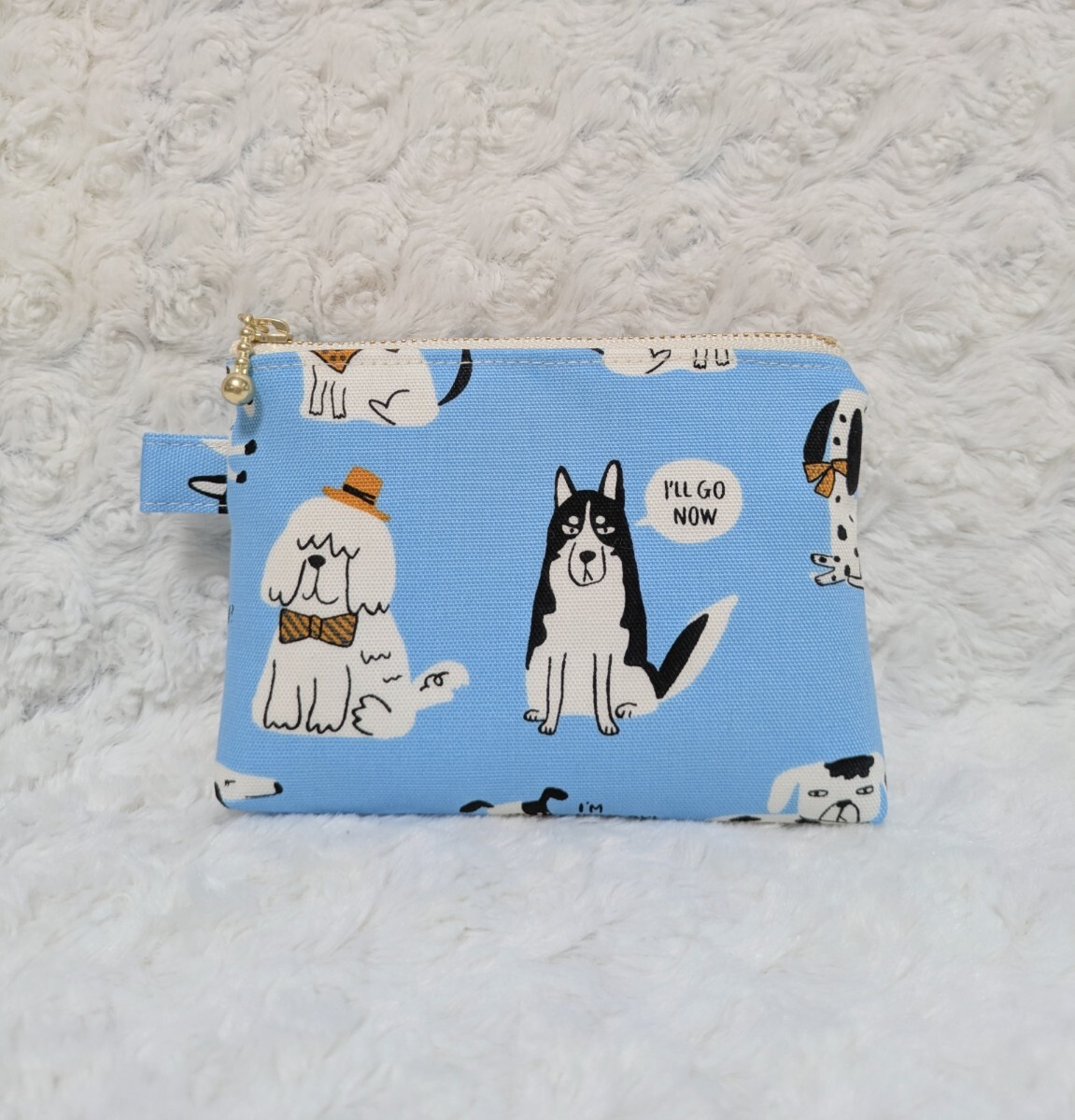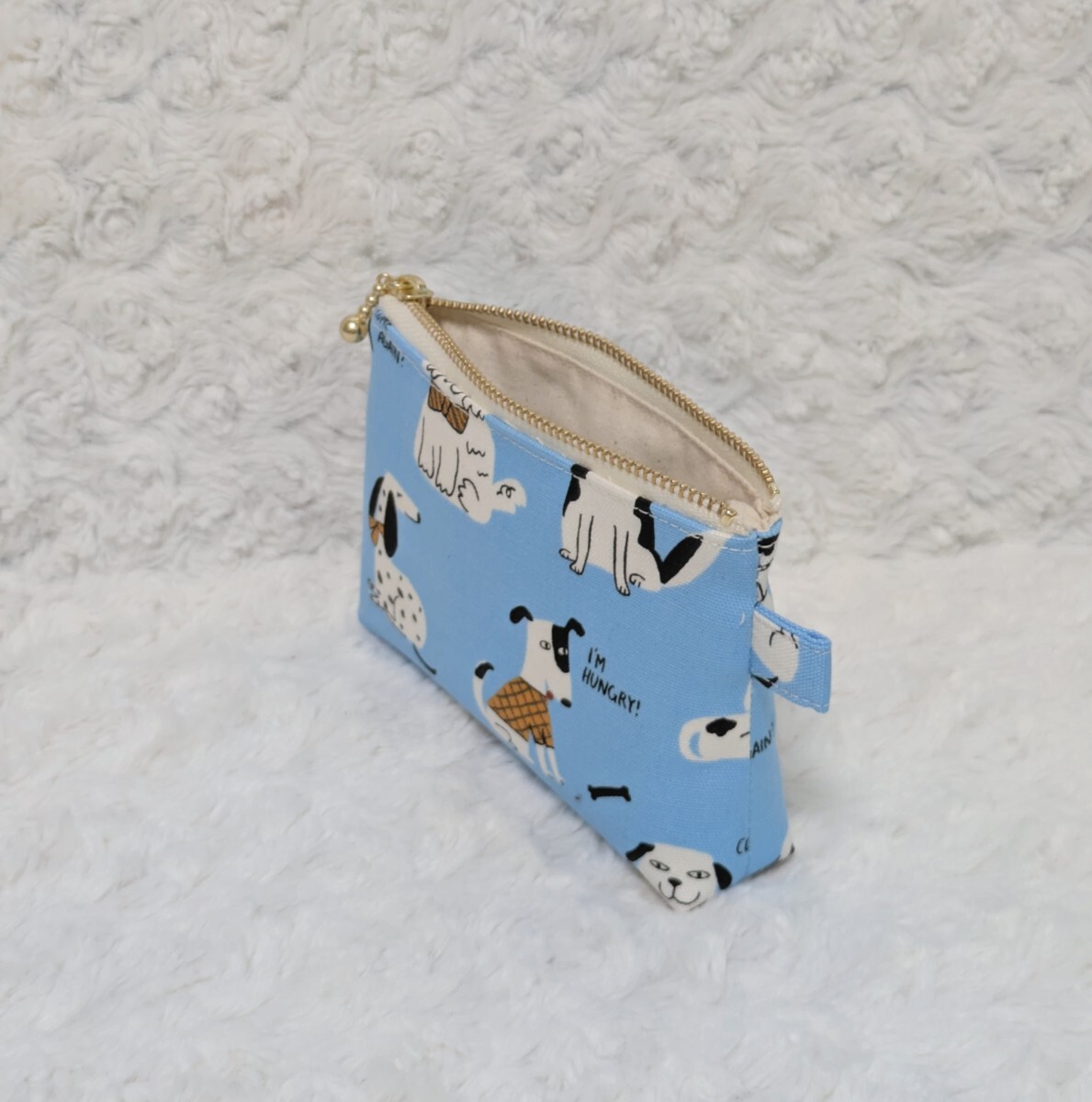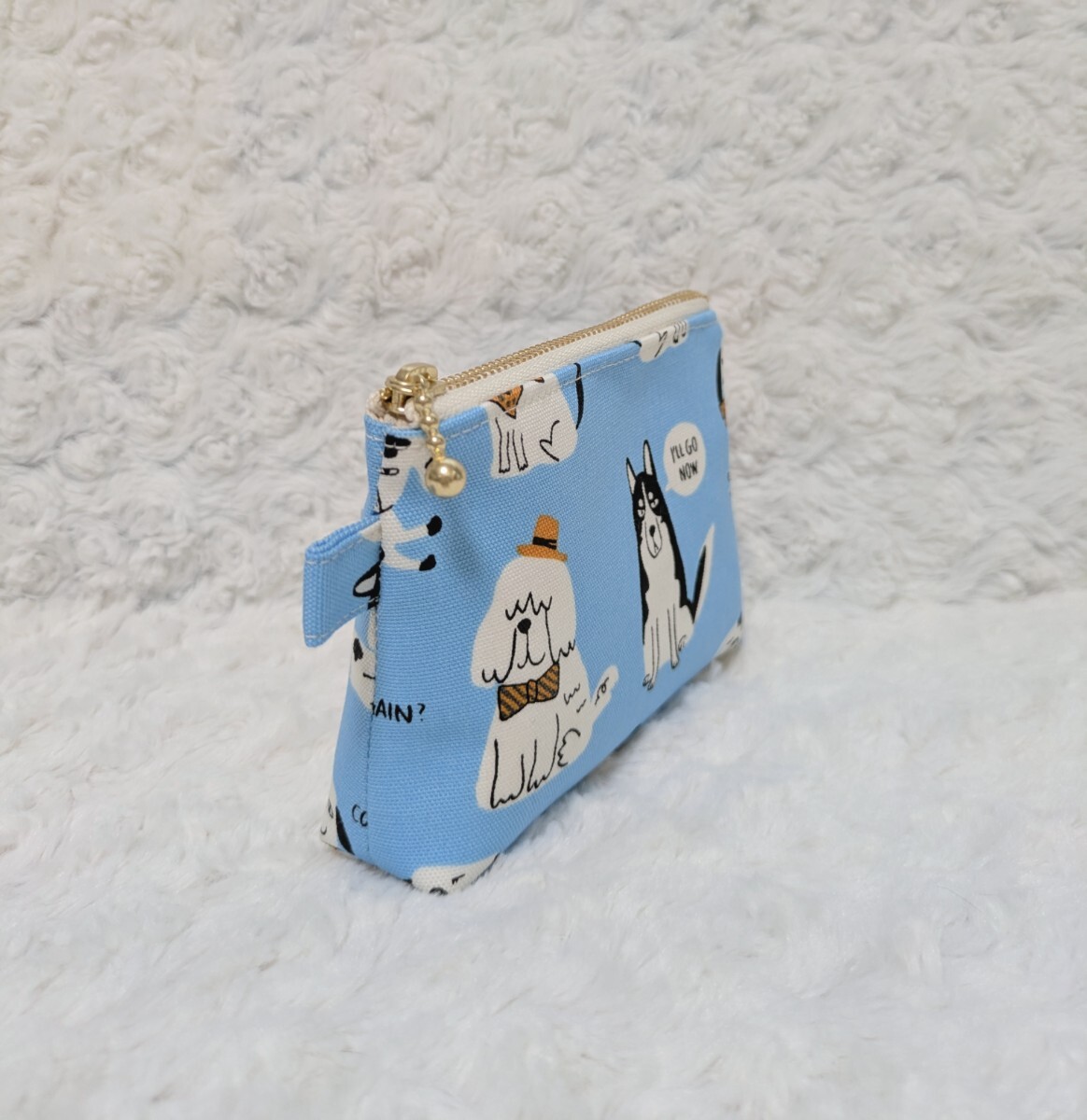 大人可愛い 愉快な犬柄 ミニポーチ ファスナータイプ 水色 化粧ポーチ 再販 | |||