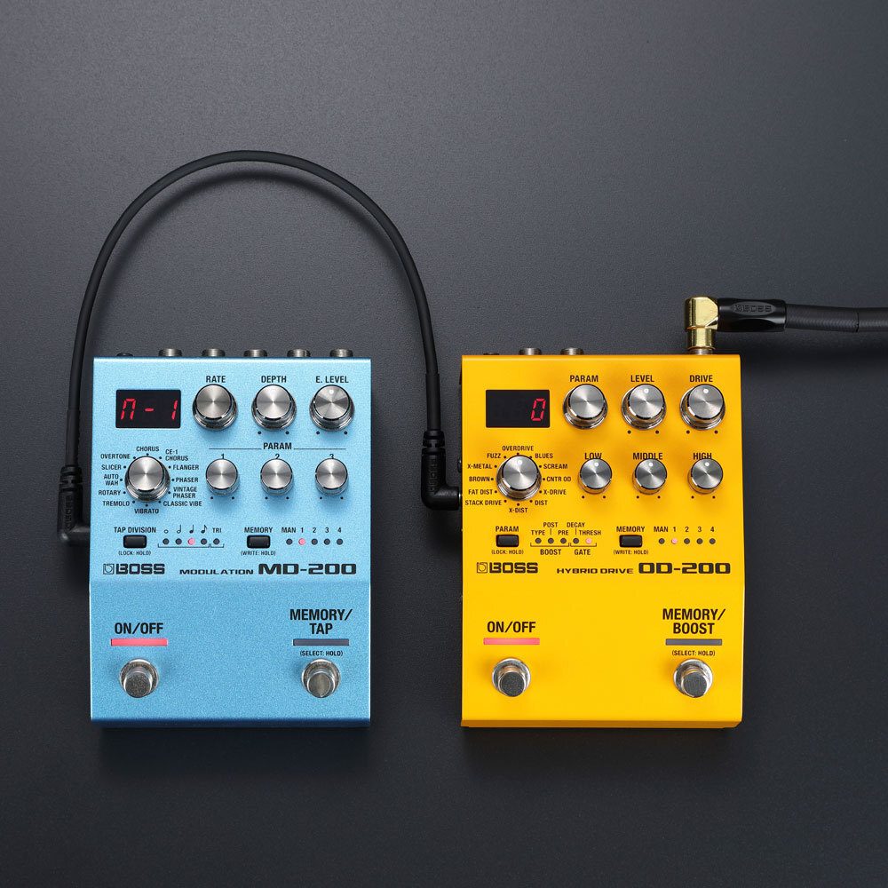 ラインナップ拡充を続けるBOSS 200シリーズは、ペダルボードへのレイアウトを容易にするコンパクトなサイズに高品位なサウンドを備えたペダルです。複数の200シリーズをBCCケーブルにてMIDI接続することにより、1回の操作で全て機器のユーザーメモリーを切り替えることが可能です。