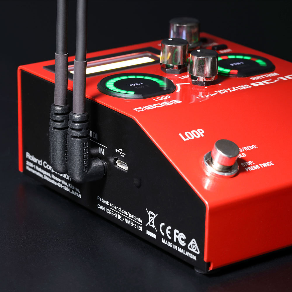 BOSS Loop Station RC-5は、進化したサウンドクオリティと視認性を高めたLCD、内蔵リズムなど高度なループ機能を搭載したコンパクトペダルです。RC-5は TRS MIDIの入出力を備えており、MIDIによる様々な制御が可能です。RC-5をもう一台追加し、BCCケーブルにてMIDI接続することにより送信側からのトラック再生に合わせ受信側のRC-5がスタートするので、2トラックを同期させたパフォーマンスが可能となります。
