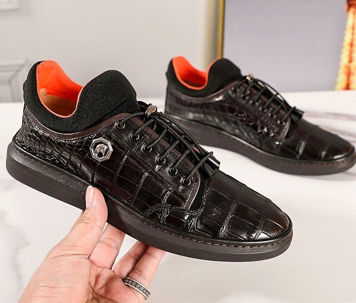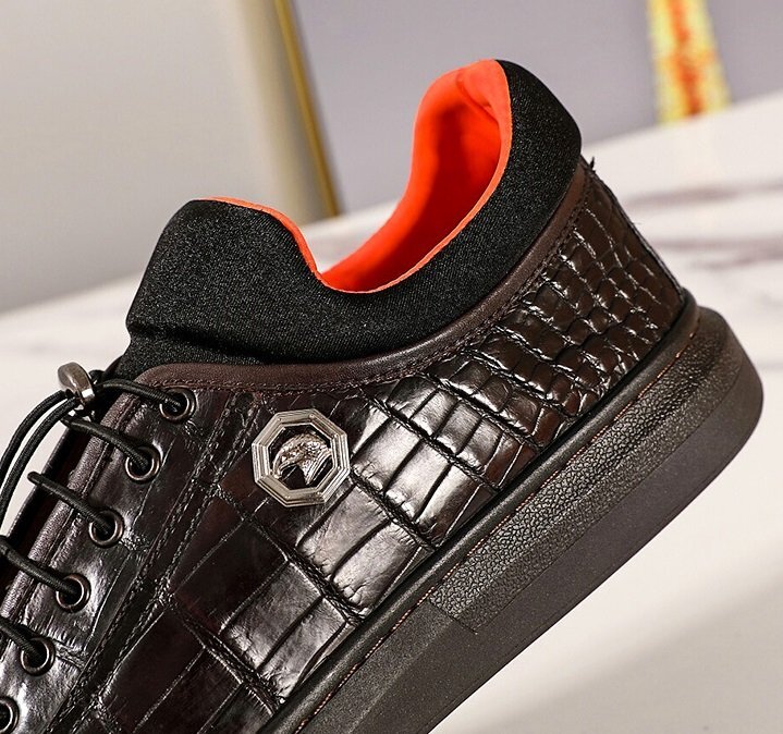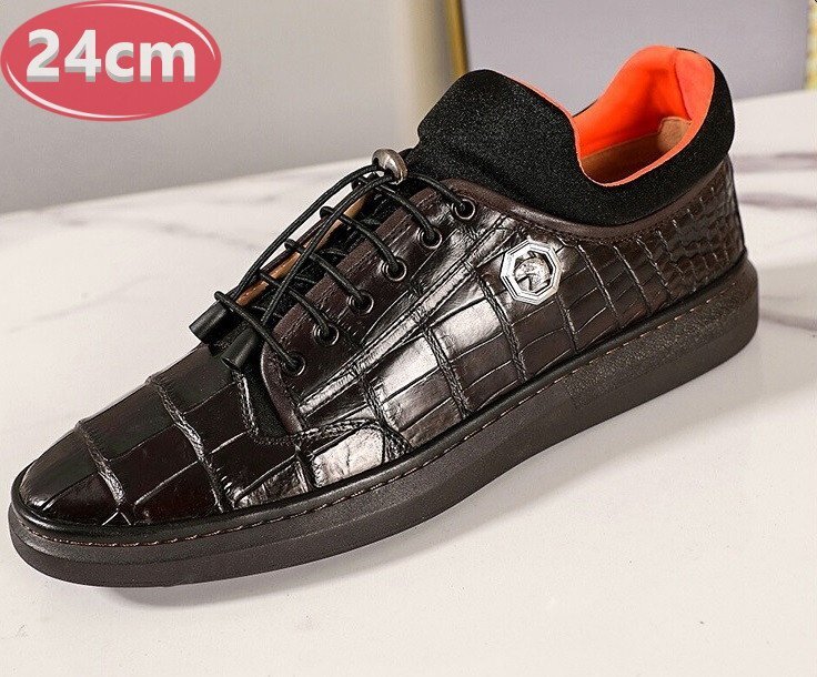 クロコダイルレザー スニーカー 最高級 ワニ革 クロコダイル 靴 メンズシューズ 革靴 ダークブラウン 24.0cm 【n790】