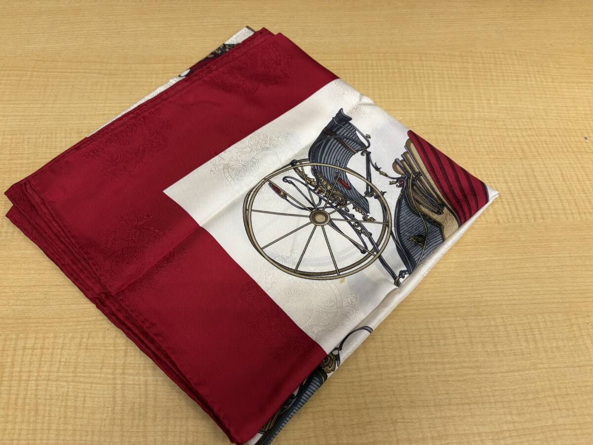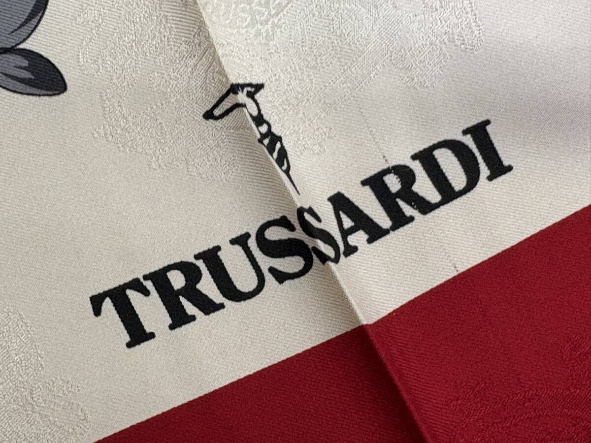 トラサルディTRUSSARDIレトロ柄シルクスカーフ★レッド/ホワイト★X25265