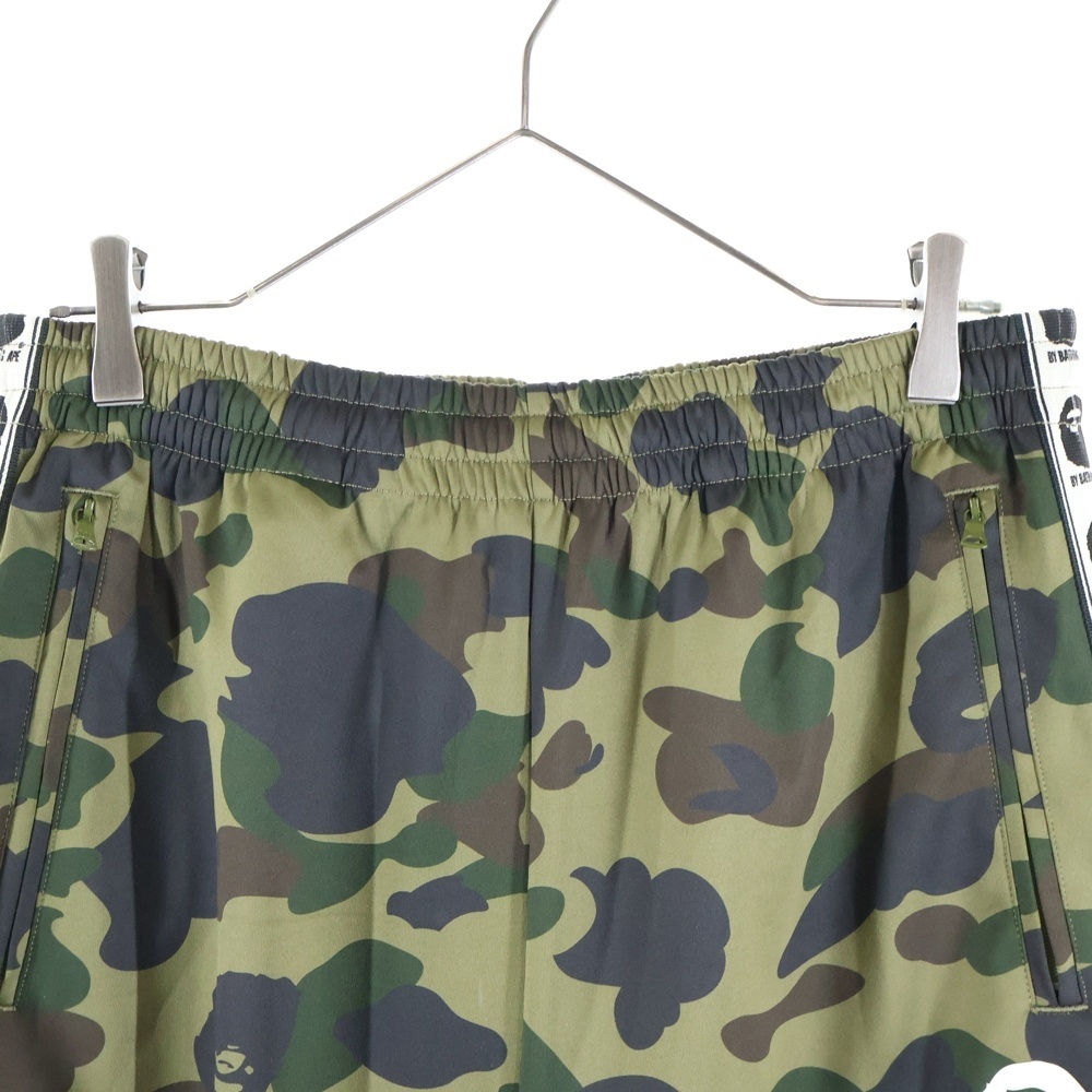 品名1ST CAMO LOOSE FIT TRACK PANTS カモ総柄 エイプヘッドプリント ロゴサイドライン トラックパンツ グリーン 1L80-115-008