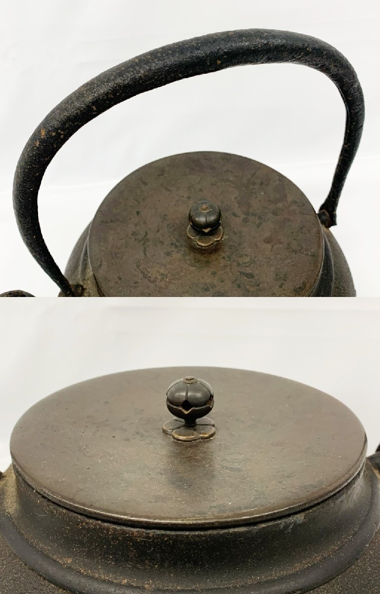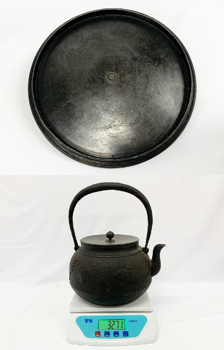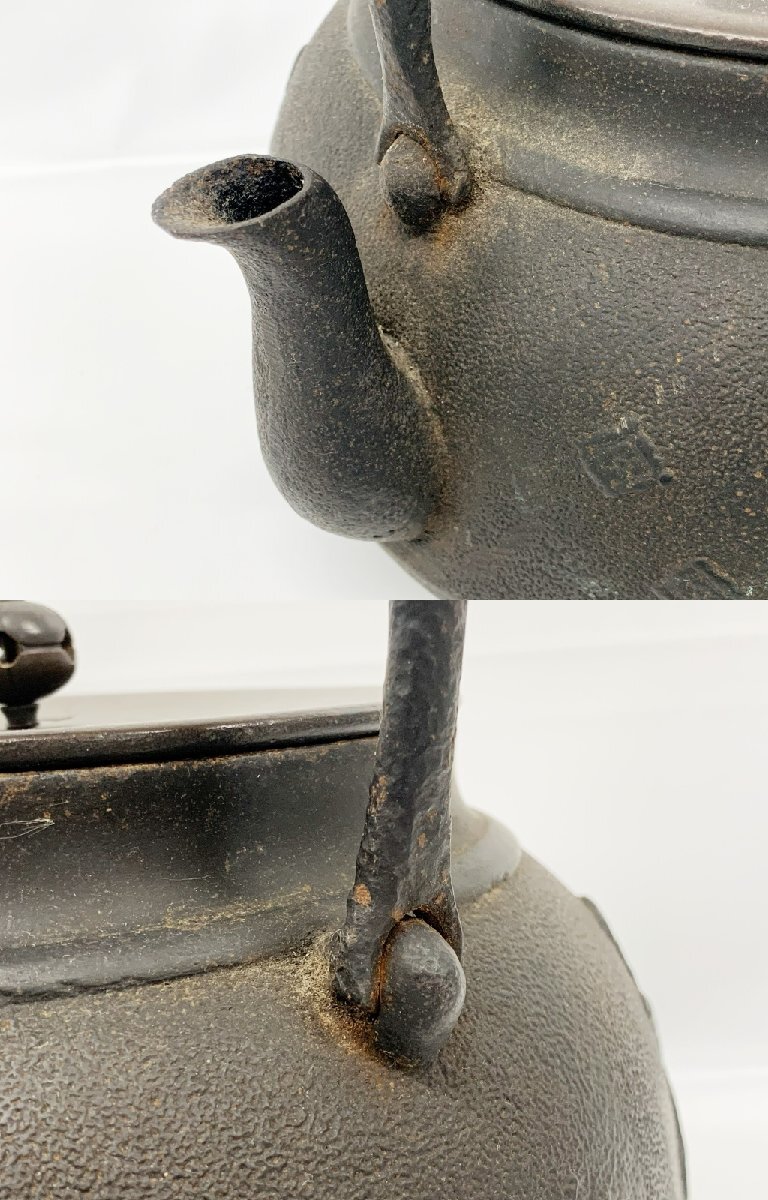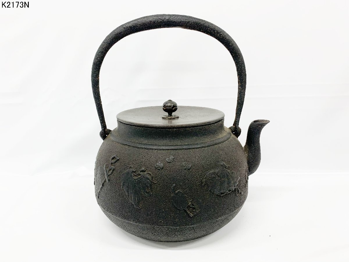鉄瓶 盛上宝尽くし紋 透梅摘み 総重量 約3271g 大型 湯沸 茶道具 煎茶道具 時代物 骨董品 古美術 K2173N.