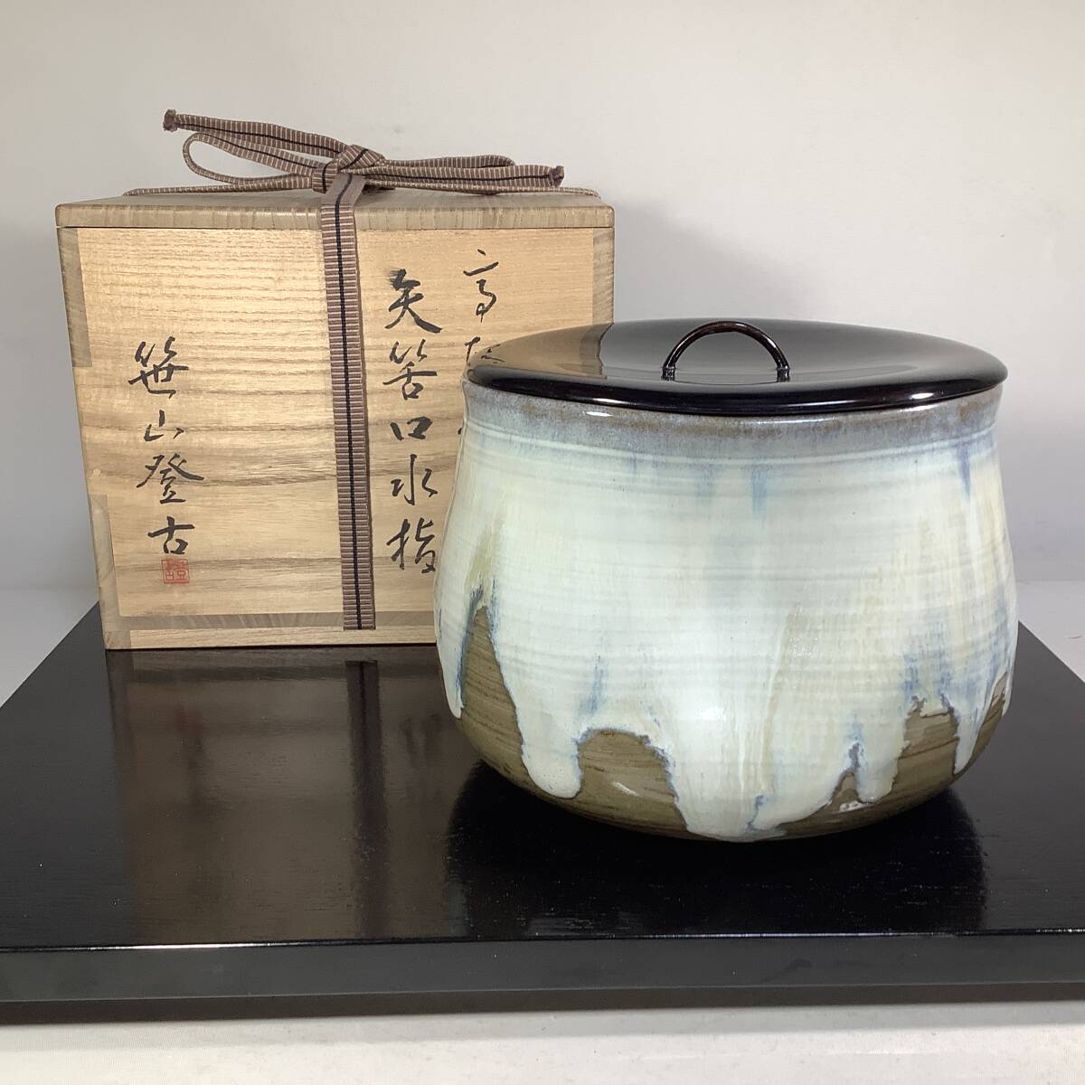 | 商品説明 | ご覧のようなお水指です。 傷もなく奇麗です。 塗蓋に多少の擦り傷が見られます。 お稽古用などにいかがでしょうか。 よろしくお願いいたします。 size 約 直径 18-19cm 高さ 14cm | |