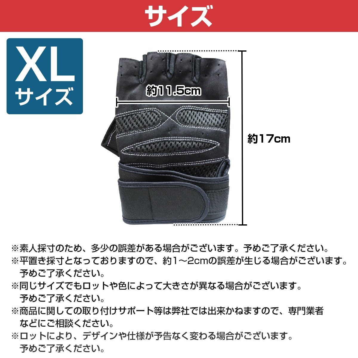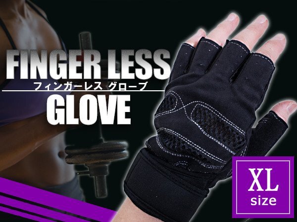 フィンガーレスグローブ ウエイトトレーニング 指なし トレーニンググローブ XLサイズ ブラック 黒 ジム ウェイトトレーニング 指だし 手袋